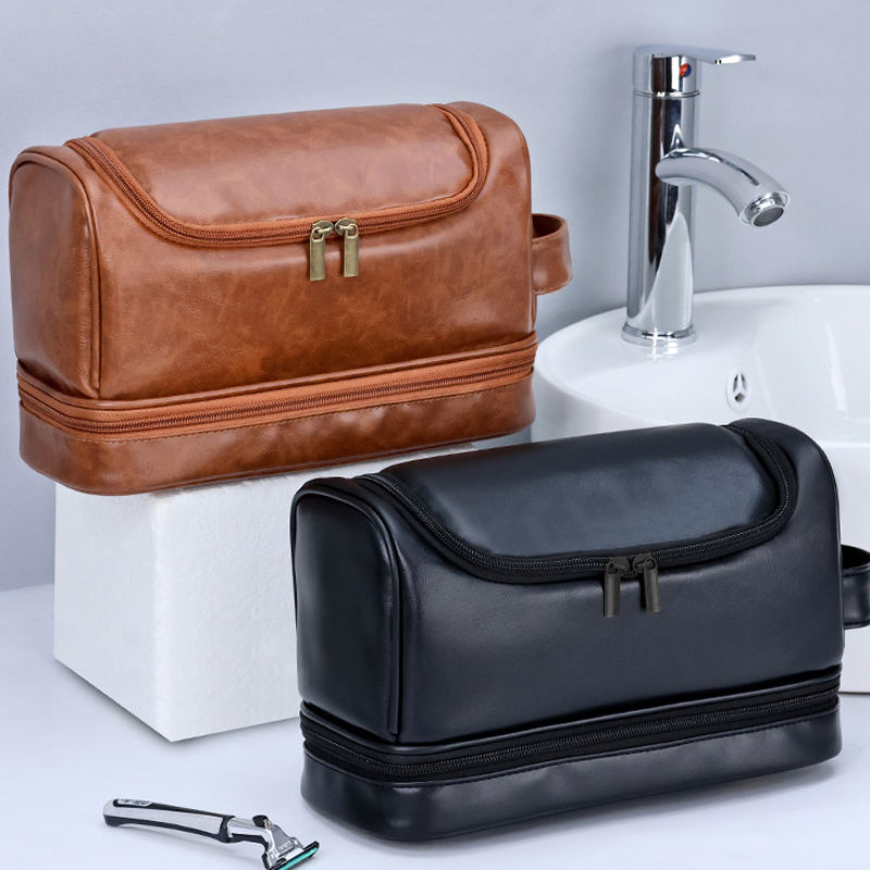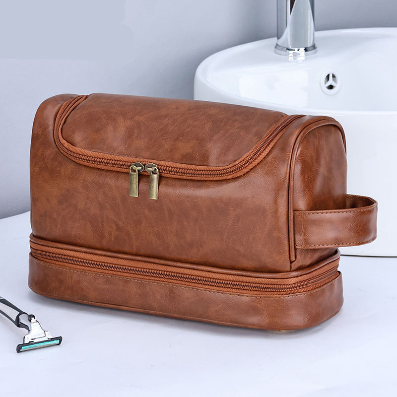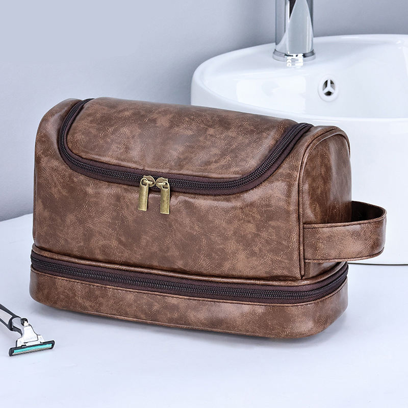 Vintage Style Luxury for Toiletry Bag Durable Water-Resistant PU Leather Cosmetic Pouch with Zipper Closure for Daily Outdoor Us