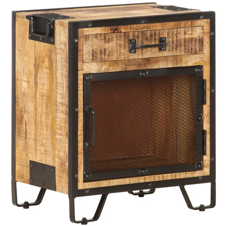 Vintage Style Mango Wooden Double Drawer Night Stand for Bedroom Living Room Hotel Villa Industrial Style Cabinets