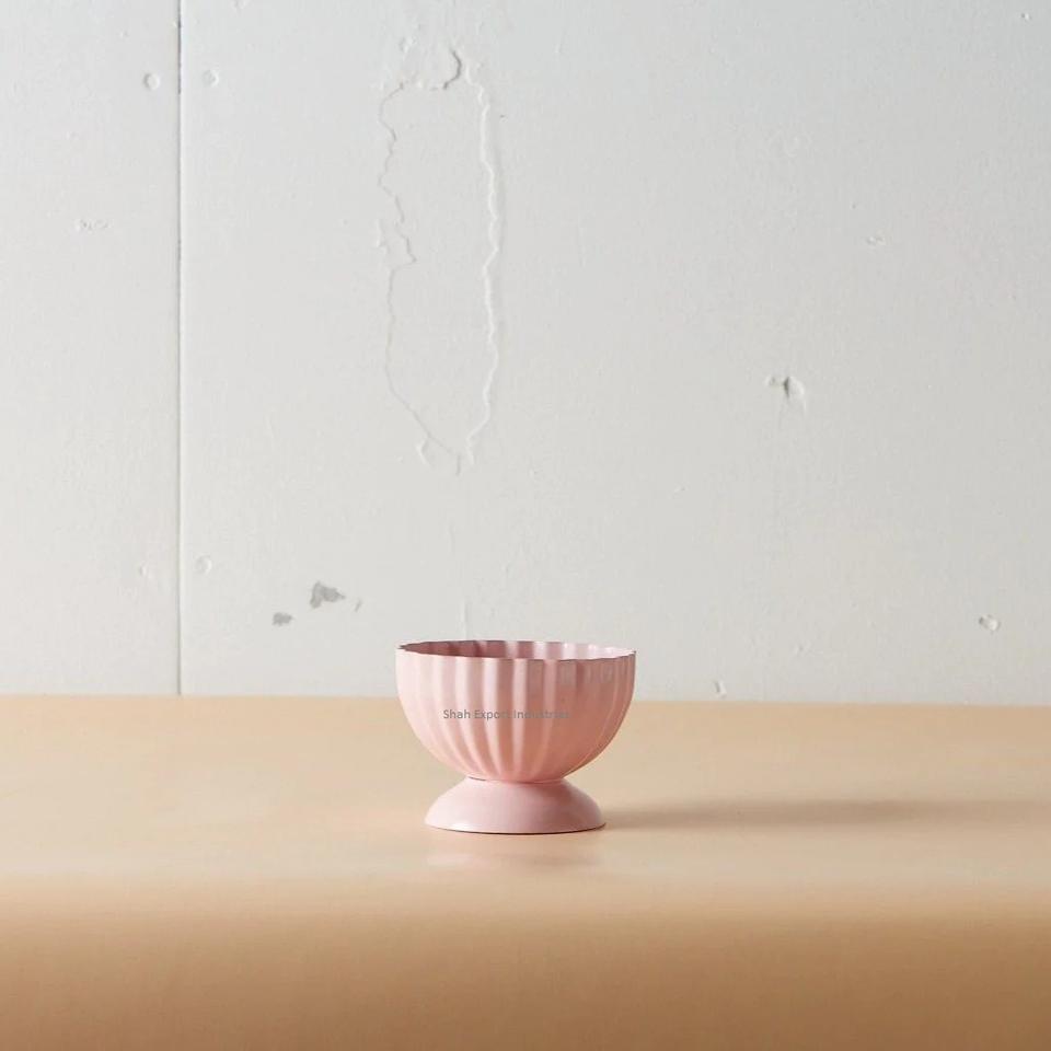 Vintage Style Metal Flower Bowl for Home Living Area Office Tabletop Decorations Round Shape Pink Color Flower Bowls