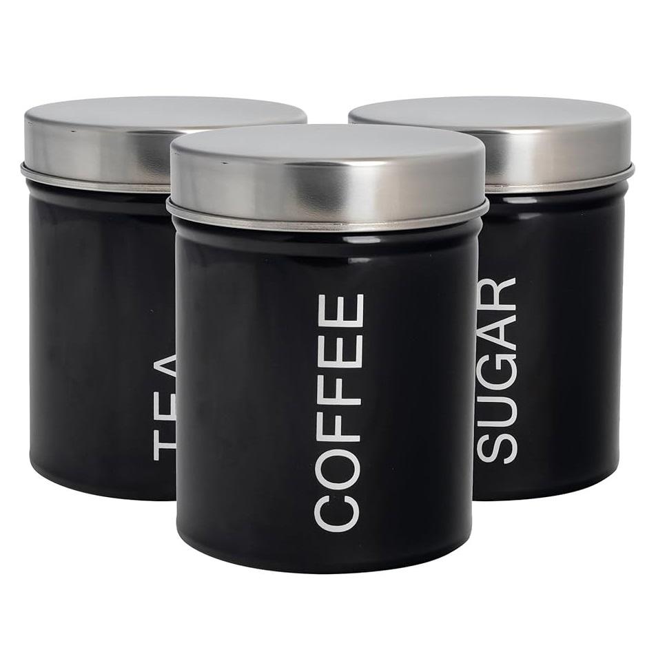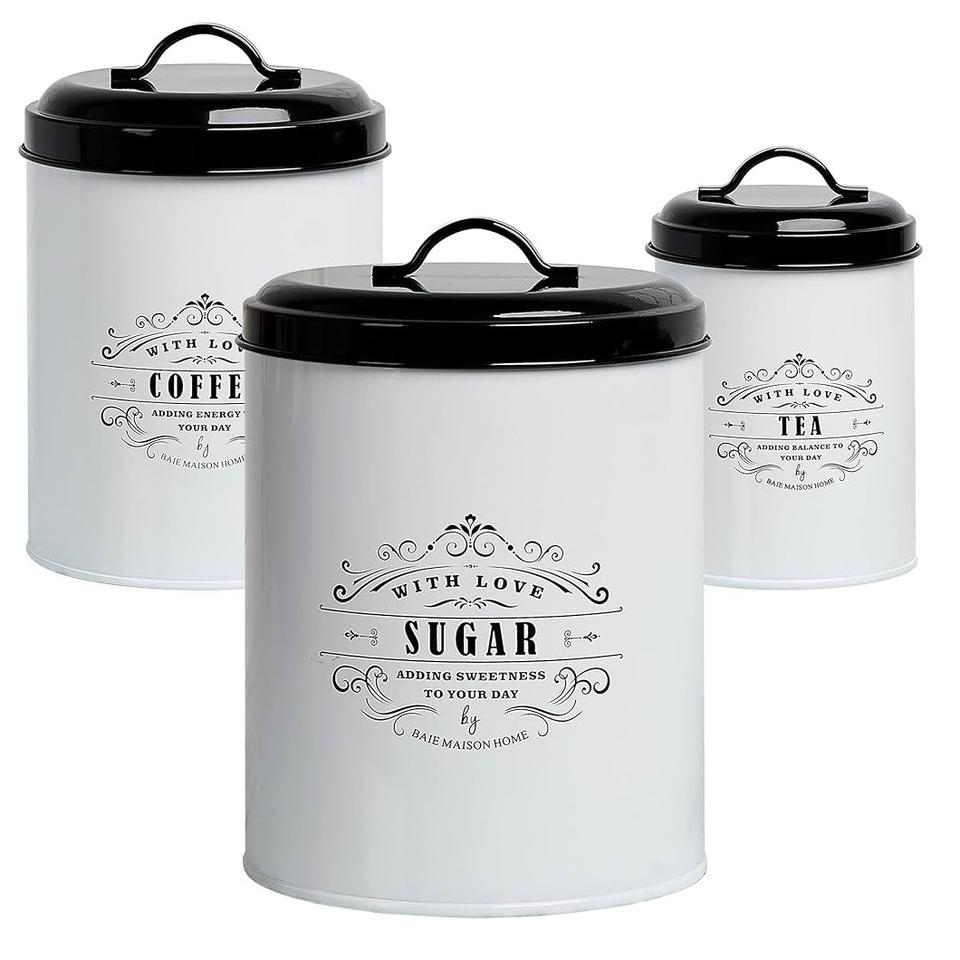 Vintage Style Metal Food Storage Canister With Lid Round Black Finished for Kitchen Ware Food Storage Canister