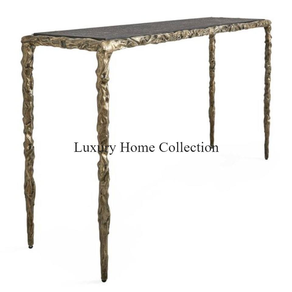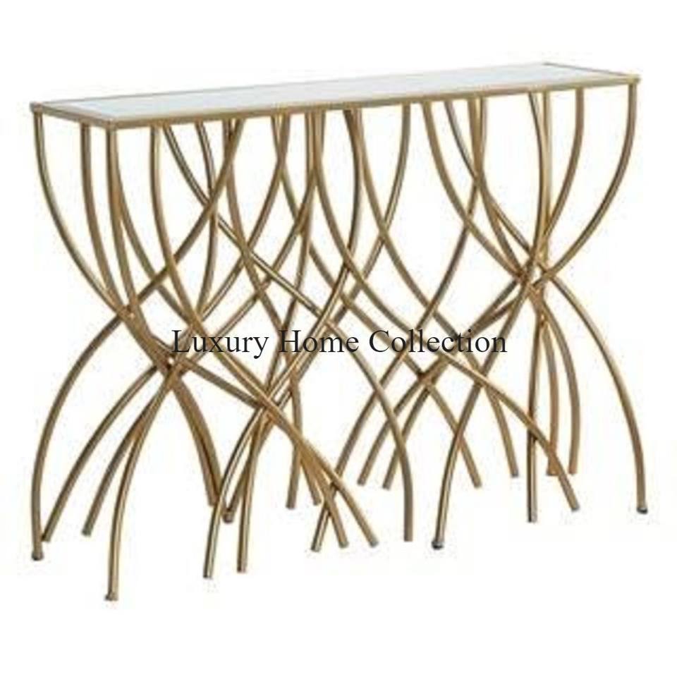 Vintage Style Metal Royal Look Tall Size Console Table Gold Color Rustic Design Handcrafted Home and Hotel Decor Wall Side Table