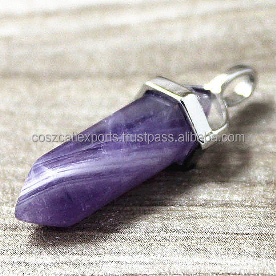 Vintage Style Natural Silver Rhodium Gold Plated Amethyst Hexagon Prism Point Pendants for Parties