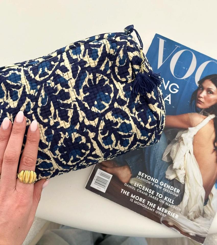 Vintage Style Navy Blue Cotton Travel Case with Zipper Closure Eco-Friendly & Durable Water Resistant for Cosmetic Use