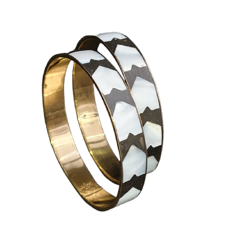 Vintage-Style Pair Resin Bangles Hand-Inlaid White Bone Waterproof Eco-Friendly Durable Handmade Glazed Finish Irregular Shape
