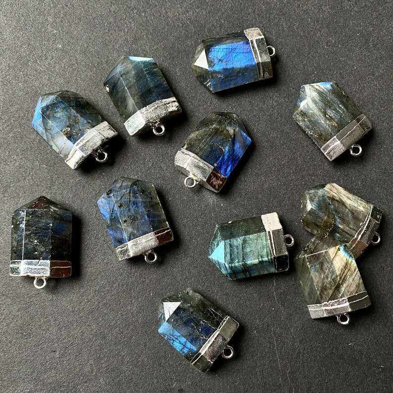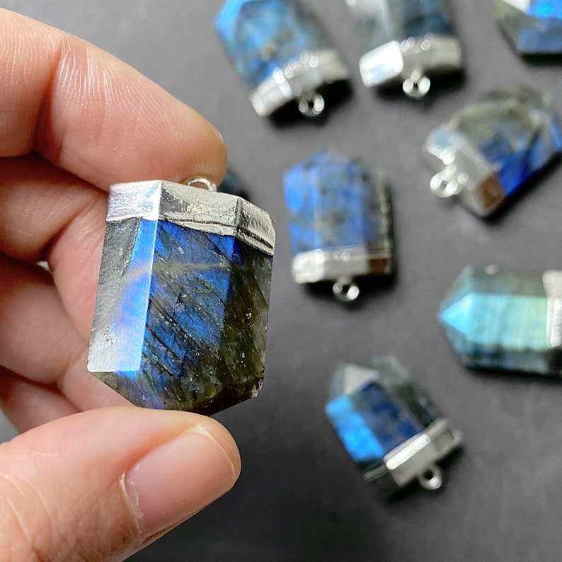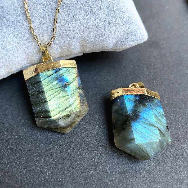 Vintage Style Polished Labradorite Stone Pendant Necklace Electroplated Gold or Silver Crystal Jewelry Gift