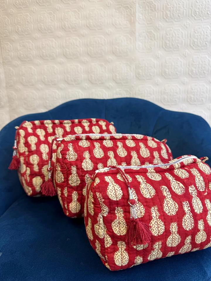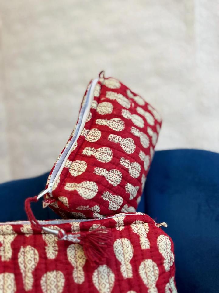 Vintage Style Quilted Cotton Paint Case Zipper Closure Eco-Friendly Water Resistant Pineapple Design Travel Small Medium Large