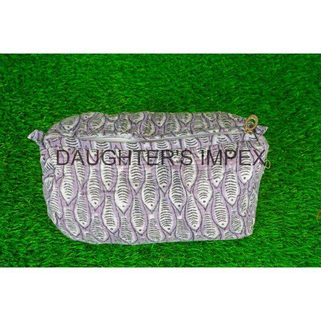 Vintage Style Quilted Cotton Travel for Toiletry Bag Fish Printed Cosmetic Pouch Durable Zipper Closure Makeup Case