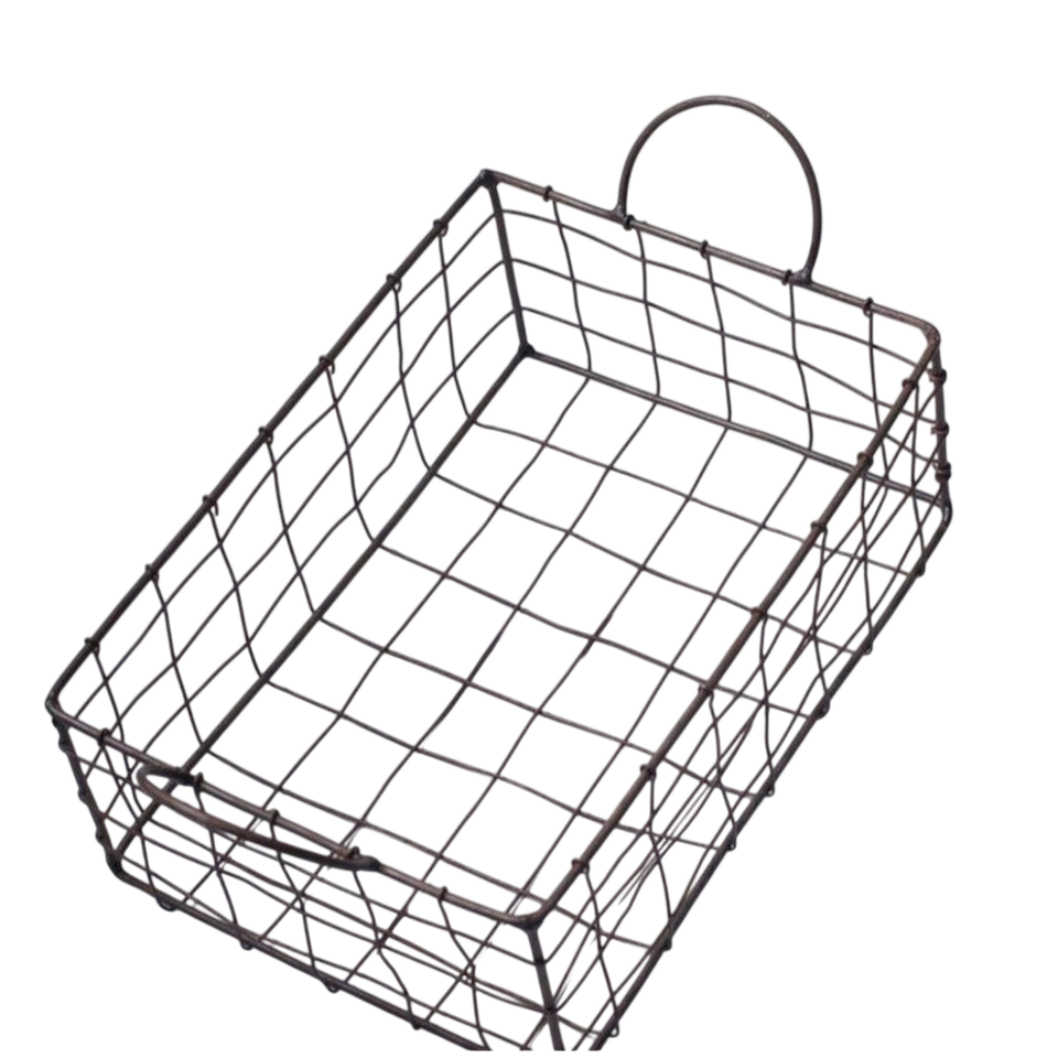 Vintage Style Rectangular Metal Wire Shopping Basket With Movable Handles Iron Storage Utility Grocery Basket For Home Organizer