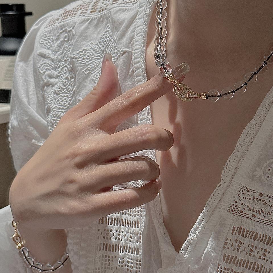 Vintage Style S925 Pure Silver Transparent White Crystal Necklace Niche Design with Simple Dense Inlaid Pig Nose Buckle