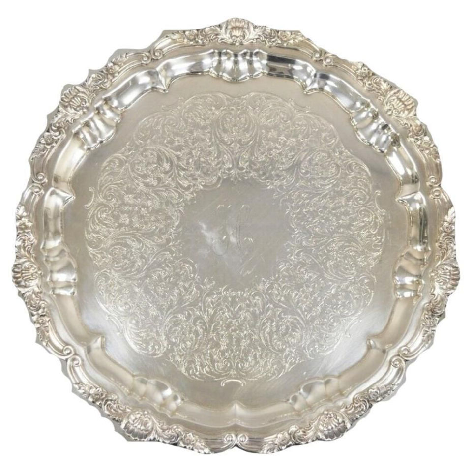 Vintage Style Scalloped Edge Pewter Metal Serving Tray Farmhouse Decor Rectangular Food Platter For Home Restaurant Use On Sale