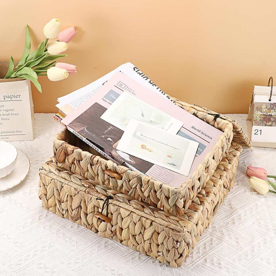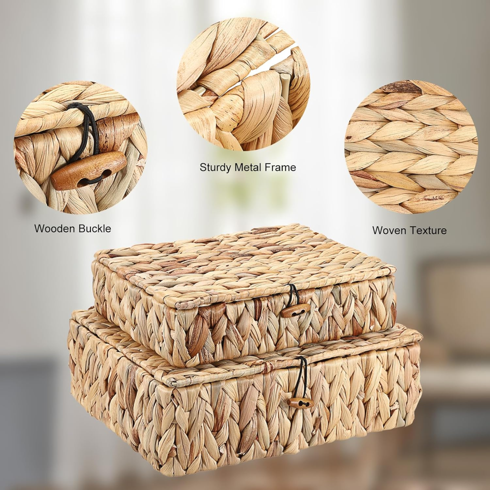 Vintage Style Water Hyacinth Storage Basket With Lid Set Of 2 Handwoven Basket Boxes Bedroom Living Room Decoration From Vietnam