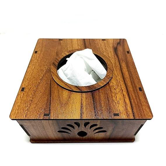 Vintage Style Wooden Tissue Box With Metal Trim Decoration Elegant Handmade Wooden Tissue Holder For Office Desk at low price