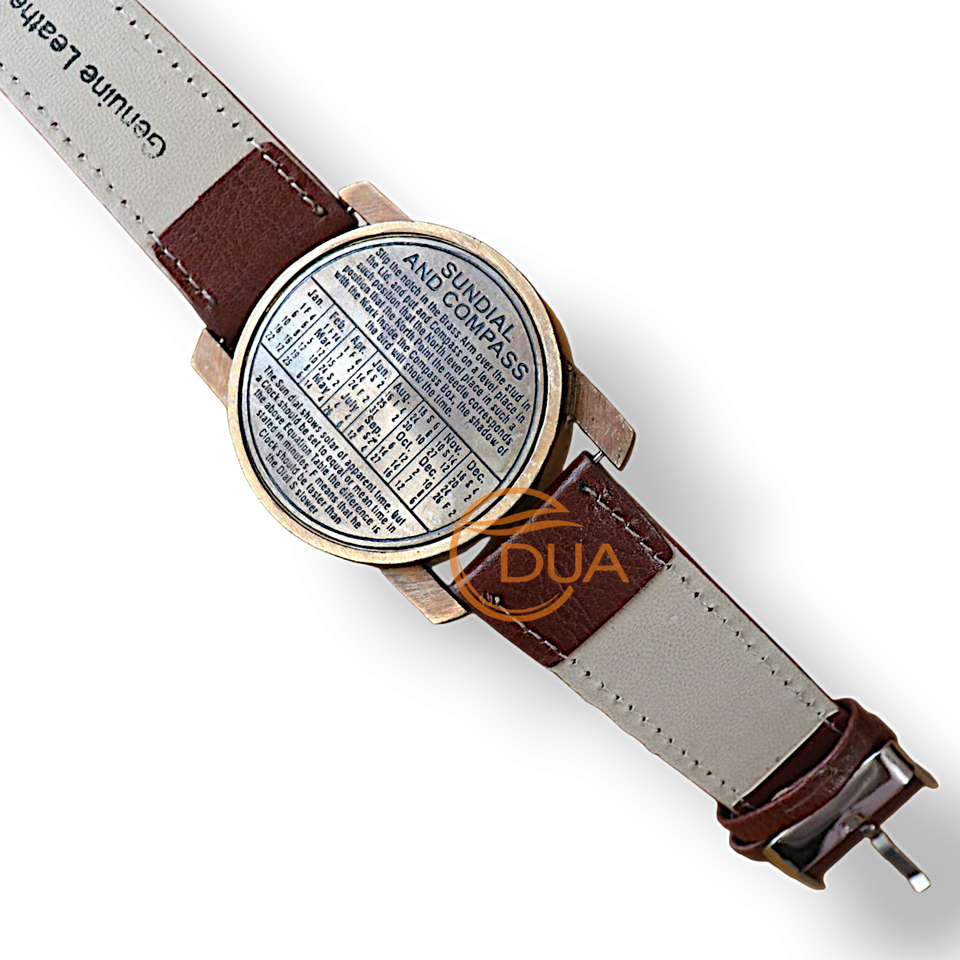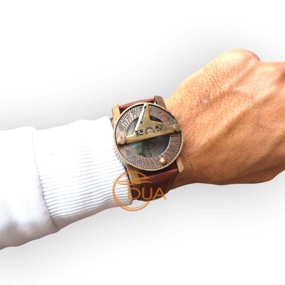 Vintage Sundial Compass with Leather Strap, Retro Antique Nautical Travel Wear, Handmade
