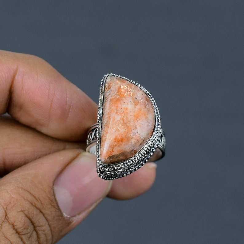 Sunstone 925 Sliver Made With Sparkling Sunstone Ring