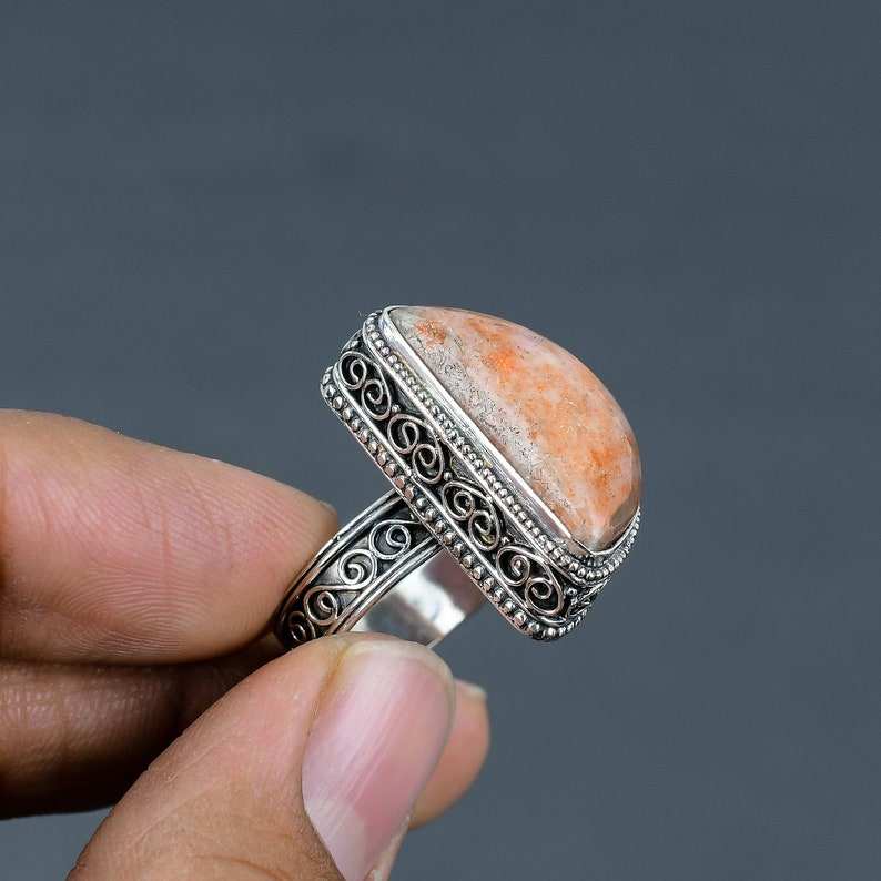 Vintage Sunstone Ring Handmade 925 Sterling Silver Size 9.5 Natural Gemstone Statement Jewelry Gift For Her