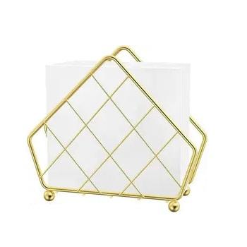 Vintage Tableware Napkin Holder Metal Napkin Stand Gold Color Tissue Stand for Home & Office Desktop Organizer