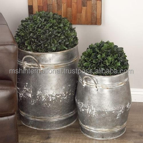 Vintage Tin Flower Planter Pot Farmhouse Home Decor Galvanized big Flowers planter Bucket Metal Vase