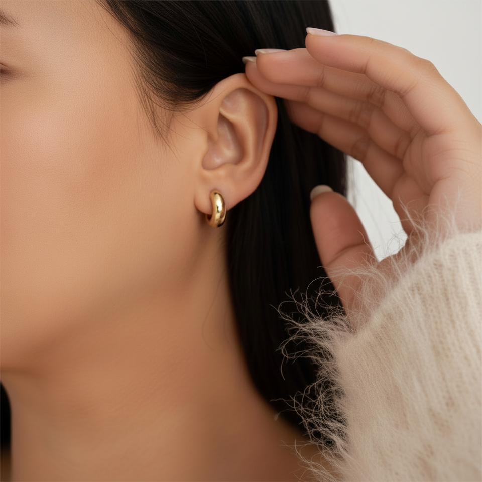 Vintage Trendy Chunky Huggie Hoops Geometric Rhodium-Plated Brass & Copper with Zircon and Pearl Stones for Party & Gift