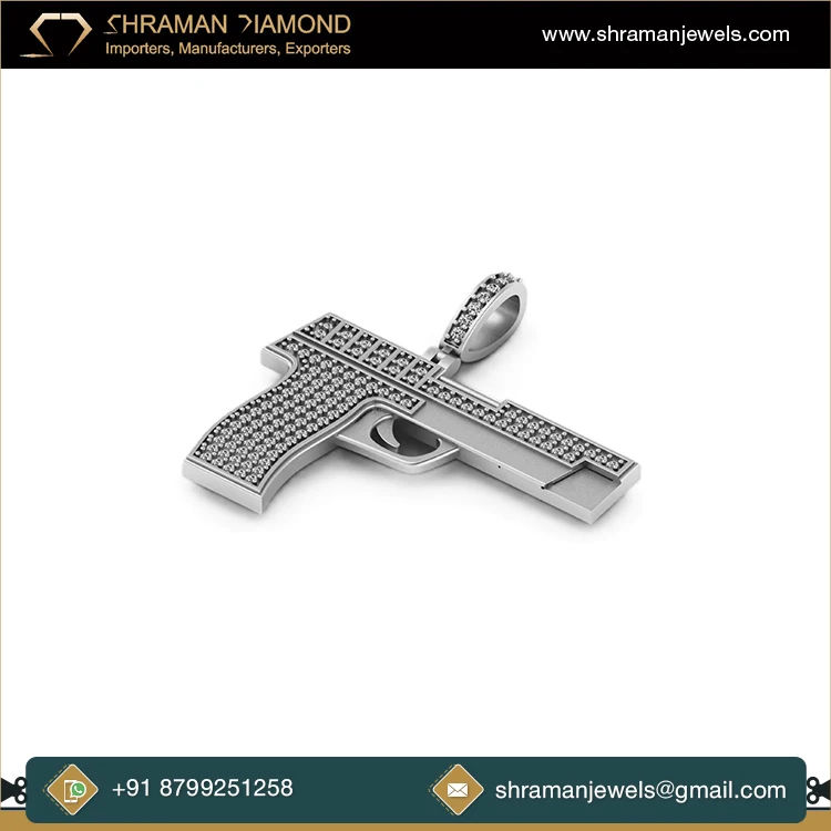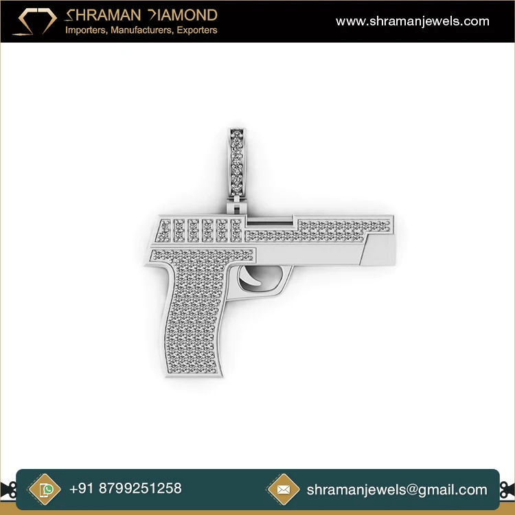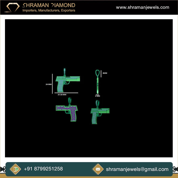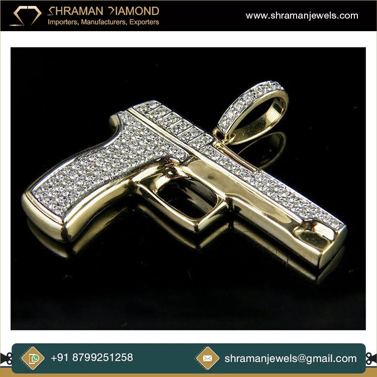 Vintage Trendy Hip Hop 10K Gold Plated Custom Chunky Pendant Minimalist Icy Pistol Gun Natural Stone 0.68ct Micro Pave Fine