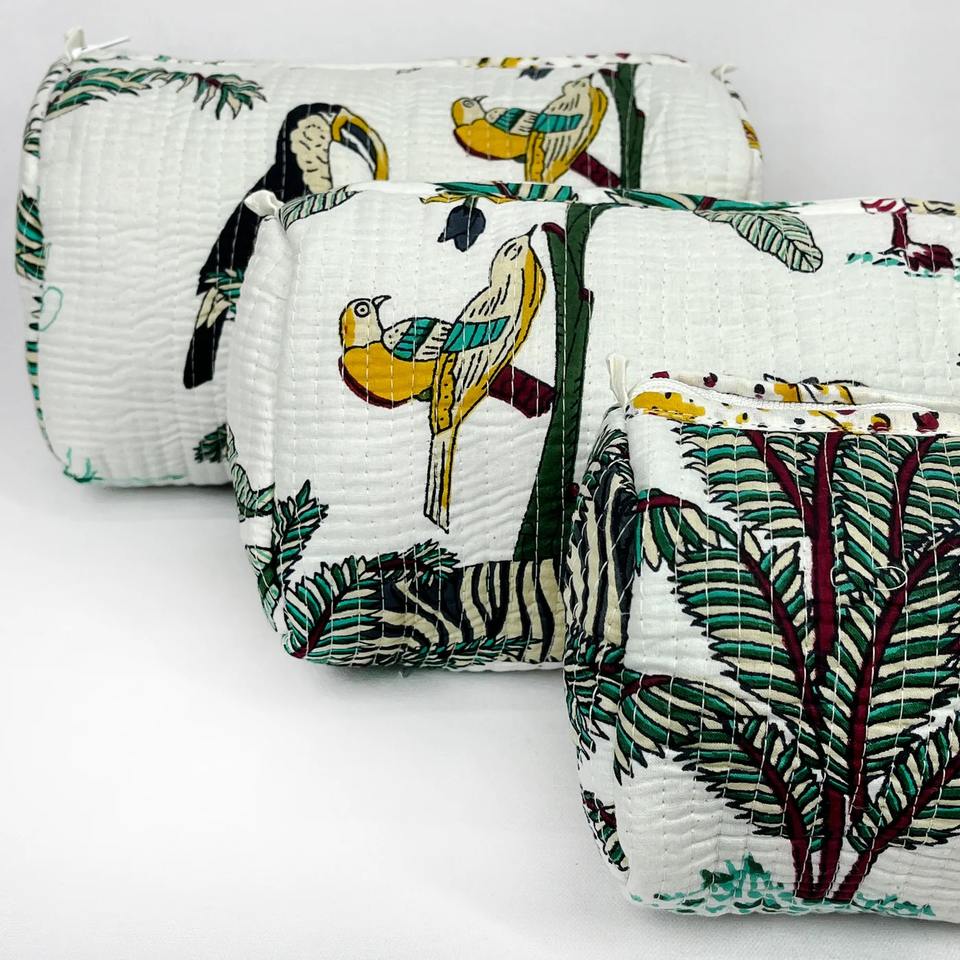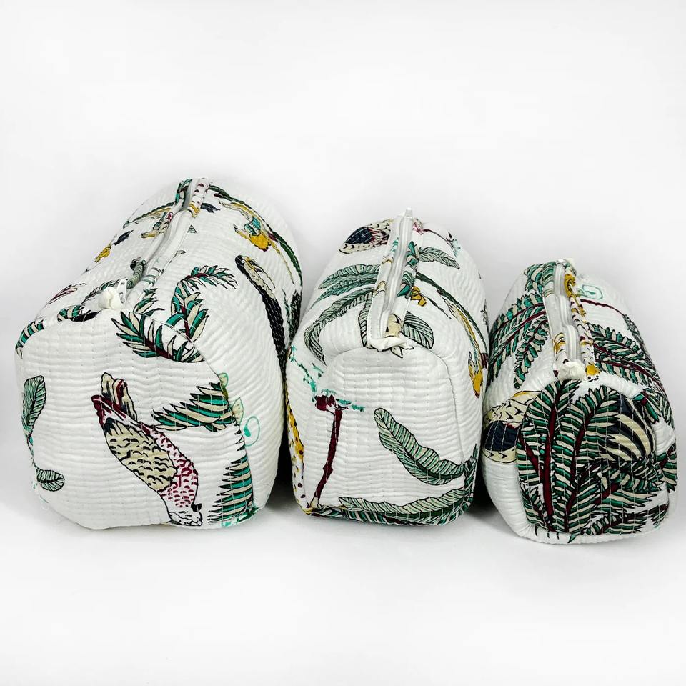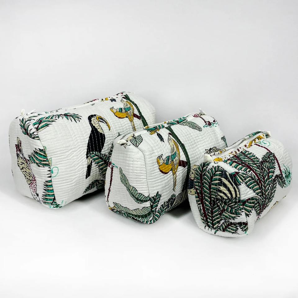 Vintage Tropical Jungle Print Quilted Cotton Case Zipper Closure Durable Eco-Friendly Water Resistant Travel Makeup Case Large