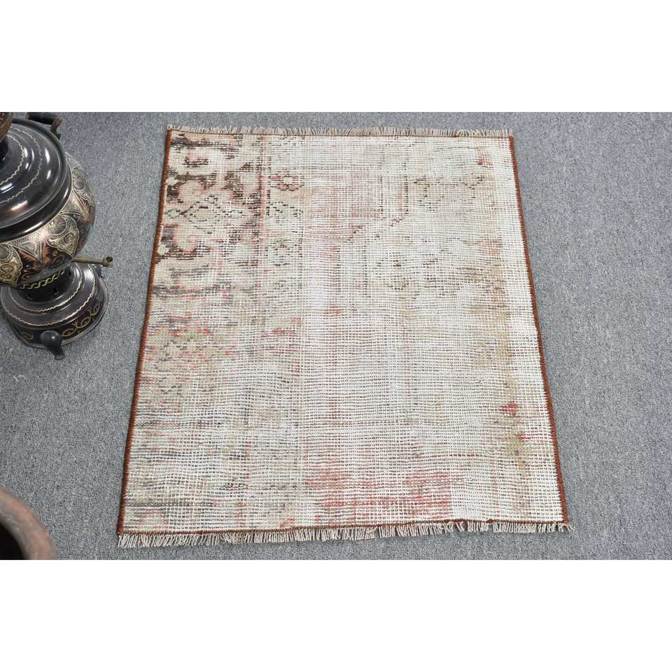 Vintage Turkish 2x2.5ft Rustic Beige Brown Rug Large Area Wool Latex Rectangle Tabriz Abstract Patchwork for Hallway Room Rug