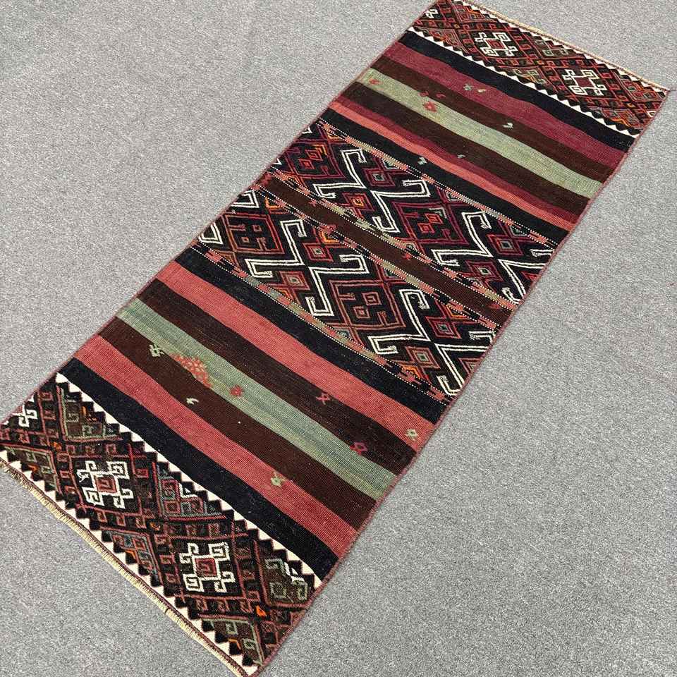 Vintage Turkish Kilim Small Rug 2.1x5 ft, Red Floral Rug Wool