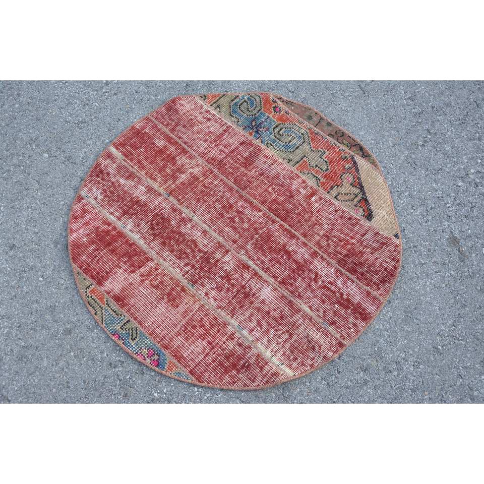 Vintage Turkish Red Rug 2.8 X 2.8ft Eclectic Patchwork Design Wool Large Area Rectangle Area 10mm Abstract for Hallway Latex