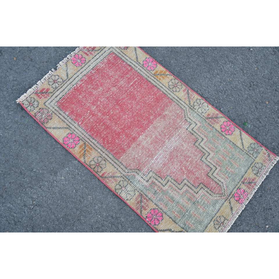 Vintage Turkish Rug 1.9 X 3.3ft Red Beige Wool Large Area with Patchwork Design for Hallway or Bedroom Latex Backed
