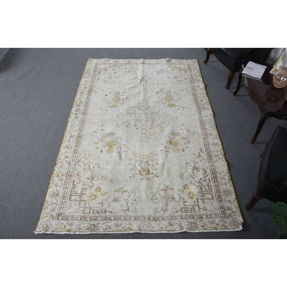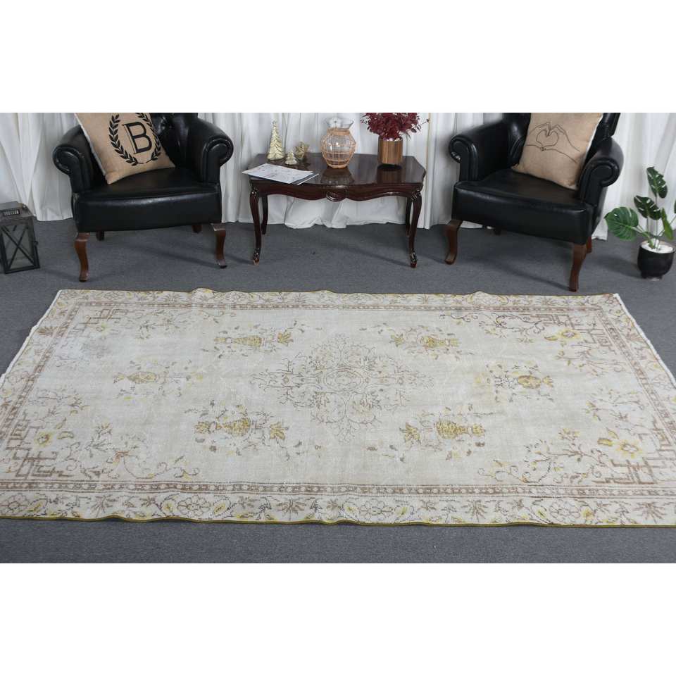 Vintage Turkish Rug 5.6 X 8.9 ft White Beige Flat Weave Patchwork Wool with Latex Backing for Living Room Decor 4m Width