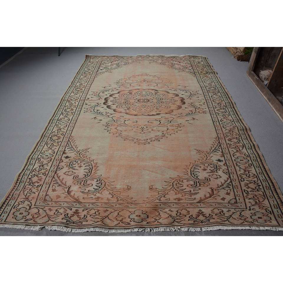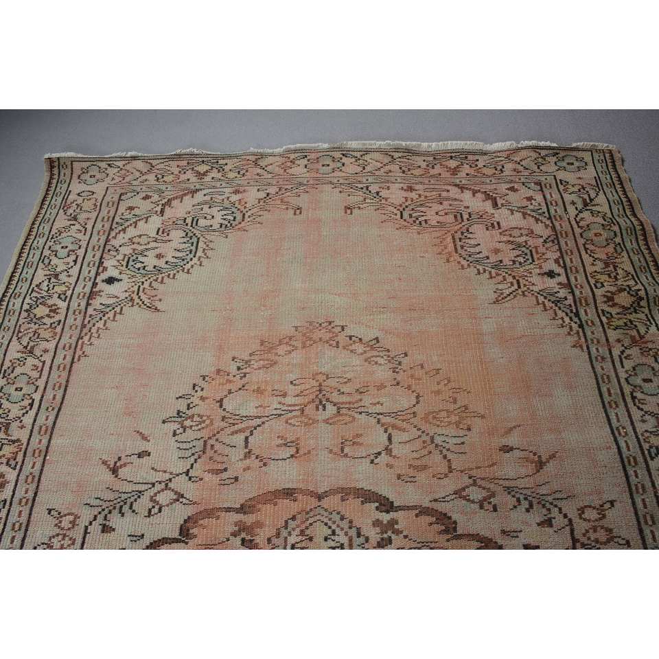 Vintage Turkish Rug 6'1\" X 9' ft Pink Beige Flat Weave Large Area for Living Room Decor Patchwork Design Wool Material Latex