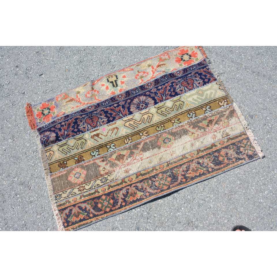 Vintage Turkish Rug Beige 2.5x3.3ft Handmade Wool Eco Friendly Medium Pile Large Area Rectangle Patchwork Design Dining Room Rug