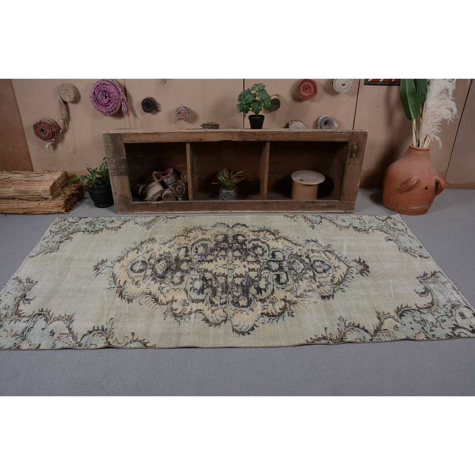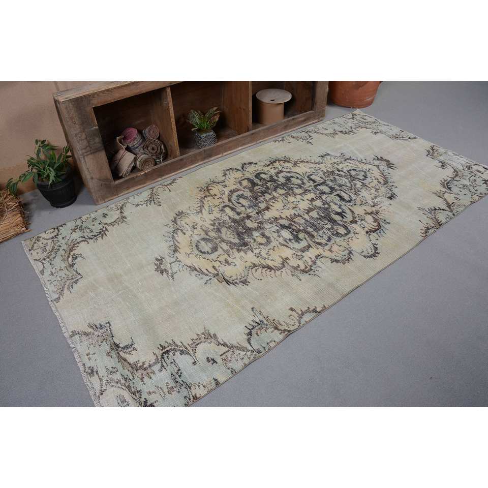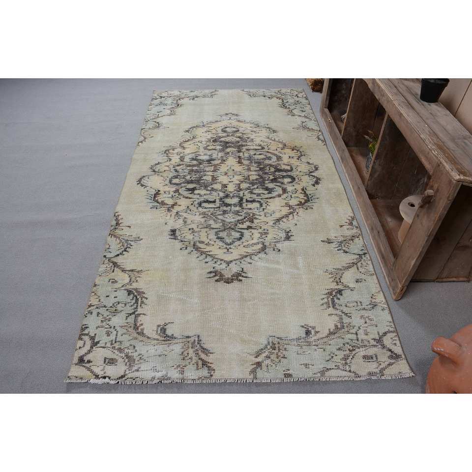 Vintage Turkish Rug Beige 4x8ft Handmade Wool Patchwork Design with Latex Backing Rectangular Hallway Pattern for Bedside
