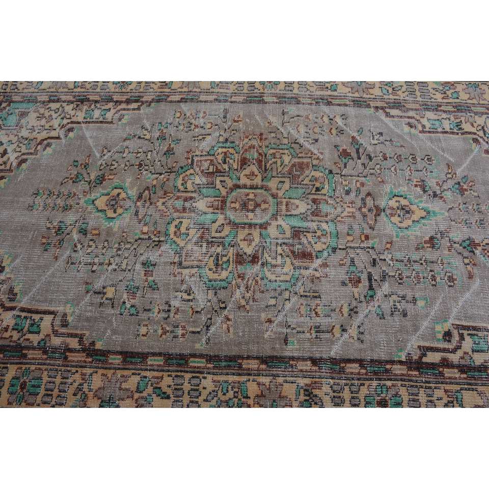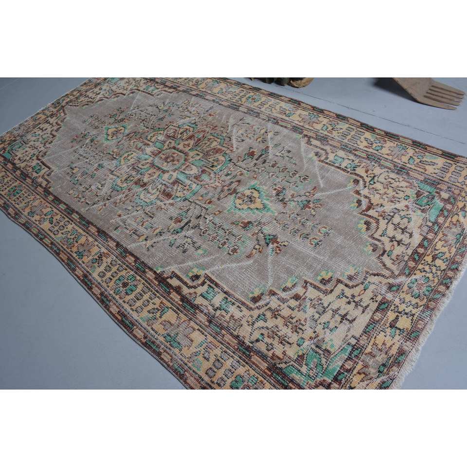 Vintage Turkish Rug Beige Blue 5.2 X 8.9 ft Wool Flat Weave with Patchwork Pattern for Living Room Decorations or Hallway Use