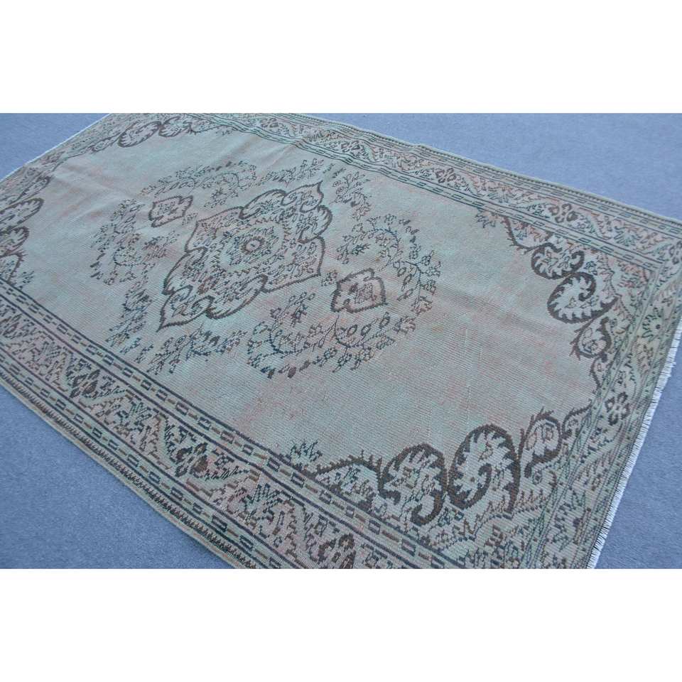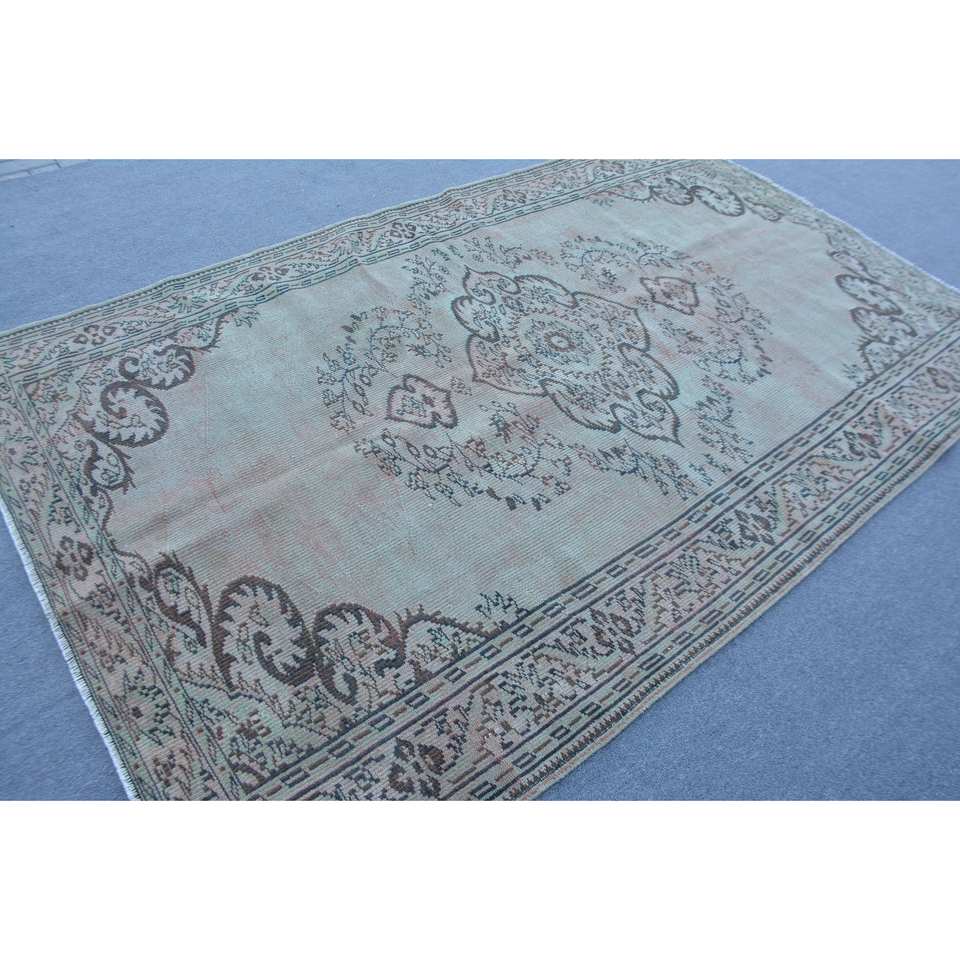 Vintage Turkish Rug Beige Brown 5.9x9.2ft Wool Flat Weave with Patchwork Pattern for Living Room Decorations