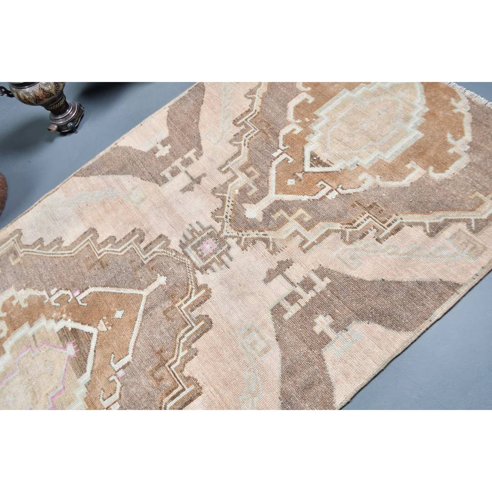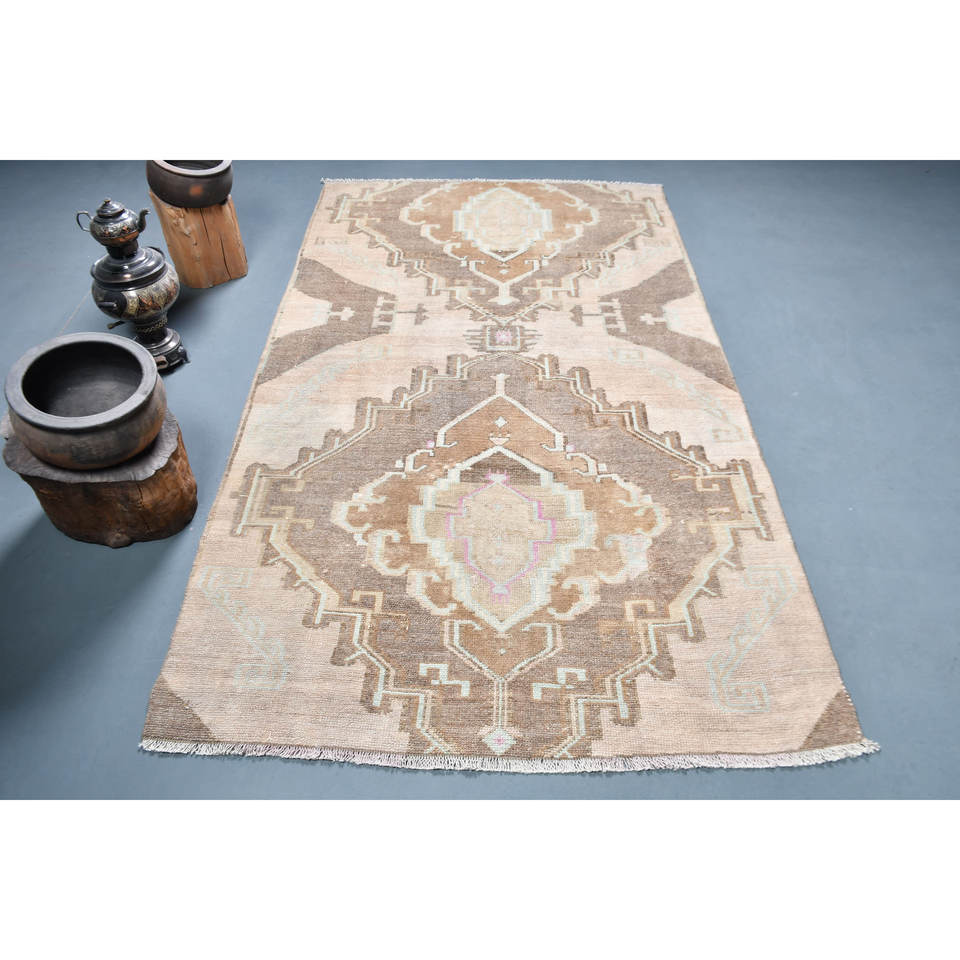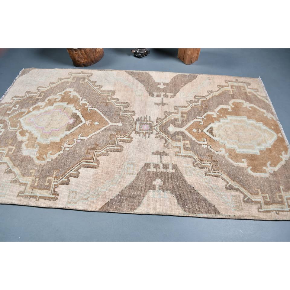 Vintage Turkish Rug Bohemian Beige Brown Classic Large Area 4.4 X 7.5 ft Woolen Rectangular Patchwork Design for Bedside Latex