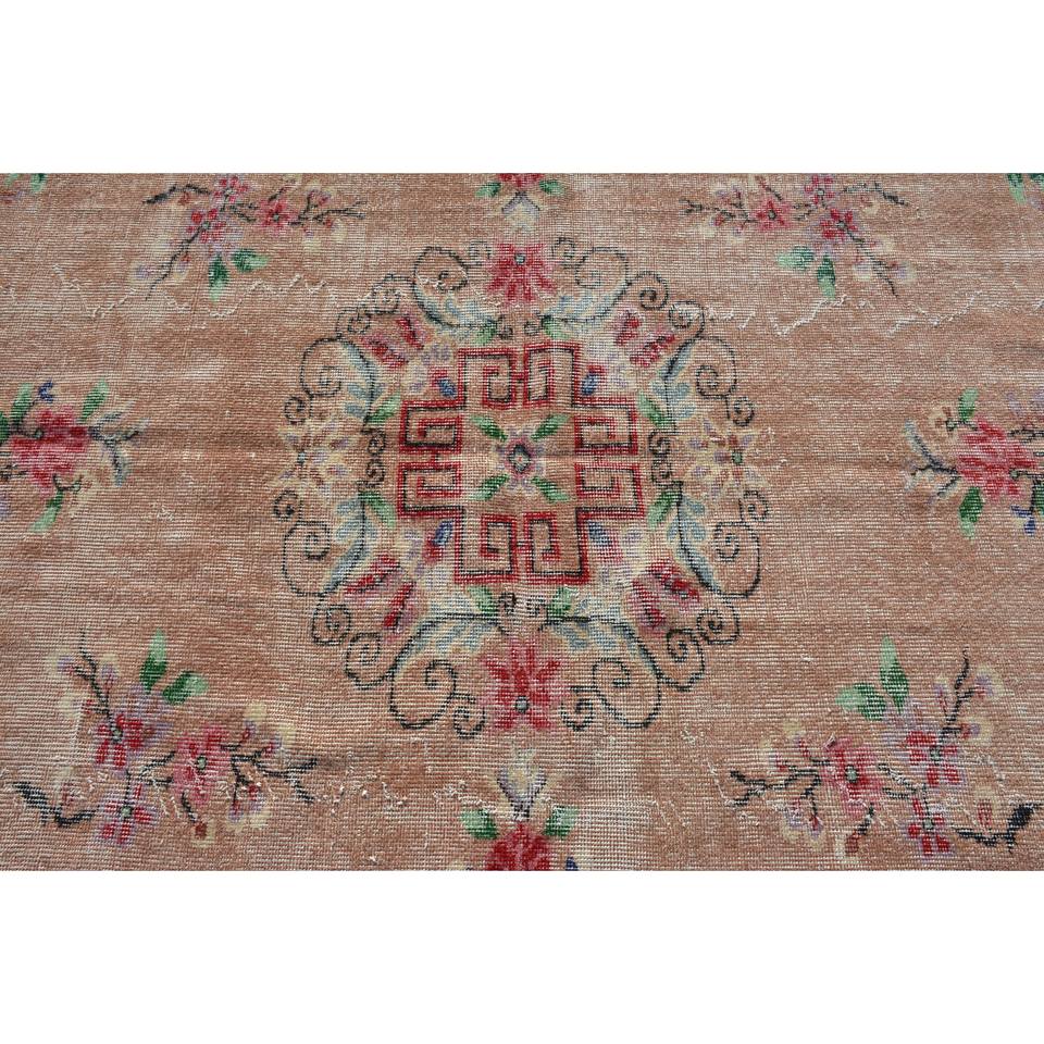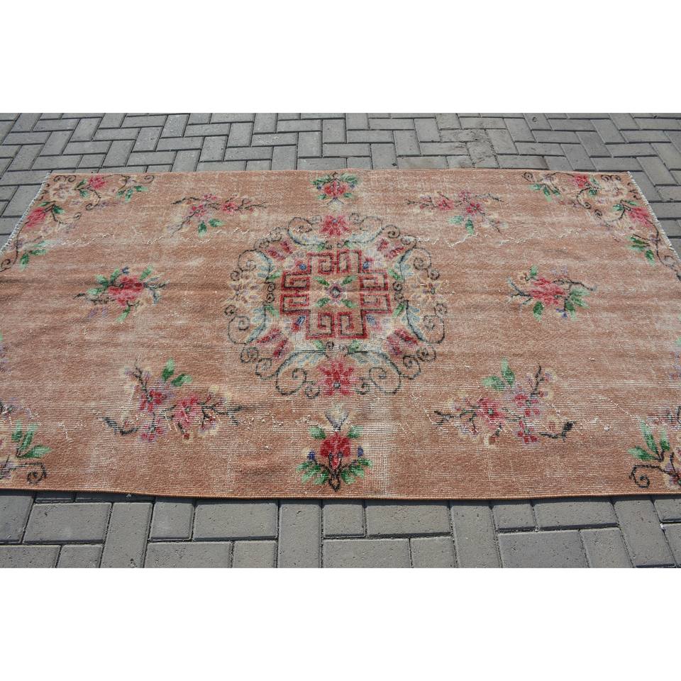 Vintage Turkish Rug Classic Beige 4.4 X 7.8 ft Patchwork Design Wool with Latex Backing for Living Room or Teen's Bedroom