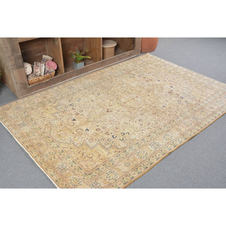 Vintage Turkish Rug Classic Beige 4.9x7.2ft Patchwork Design Wool Viscose Material Latex Backing Eco Friendly Medium Pile Dining