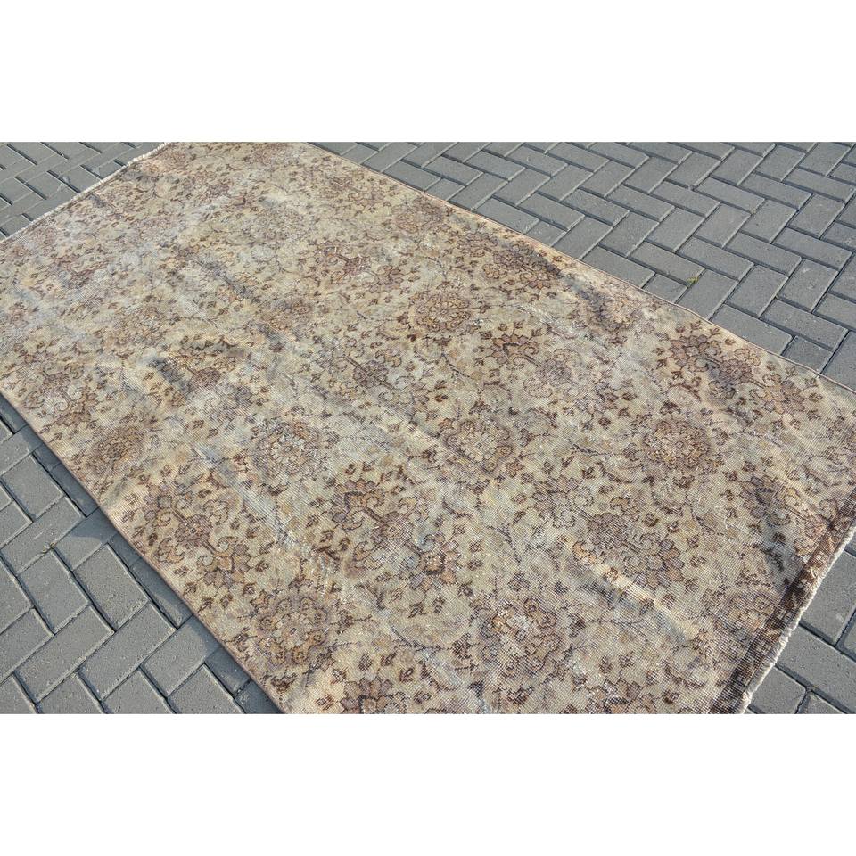 Vintage Turkish Rug Classic Beige Brown 4.5 X 8.6 ft Large Area Patchwork Wool with Latex Backing for Hallway or Bedroom