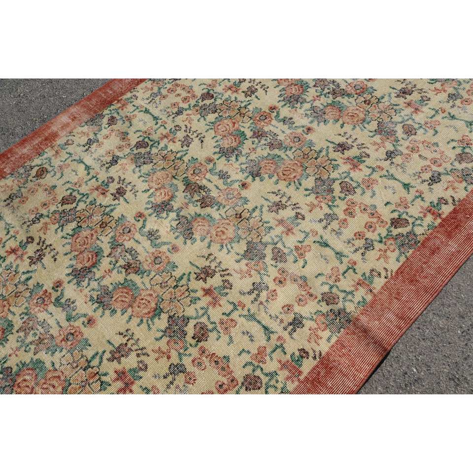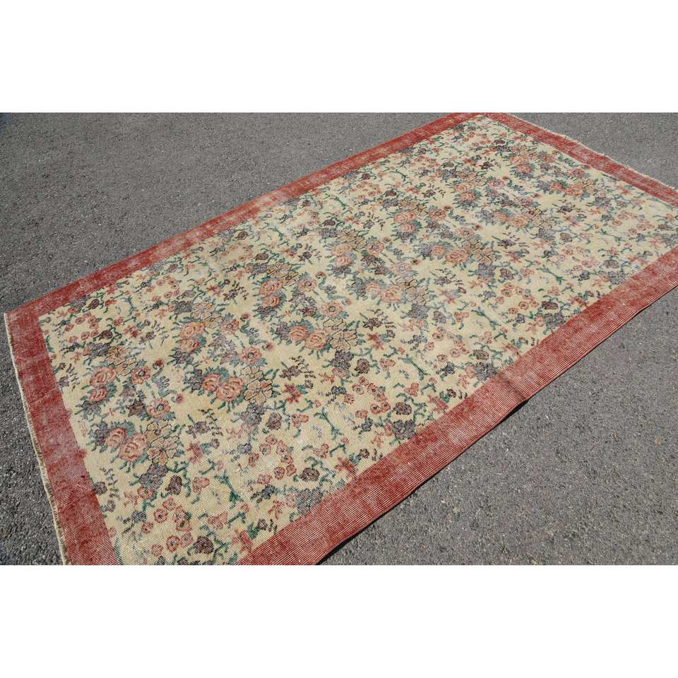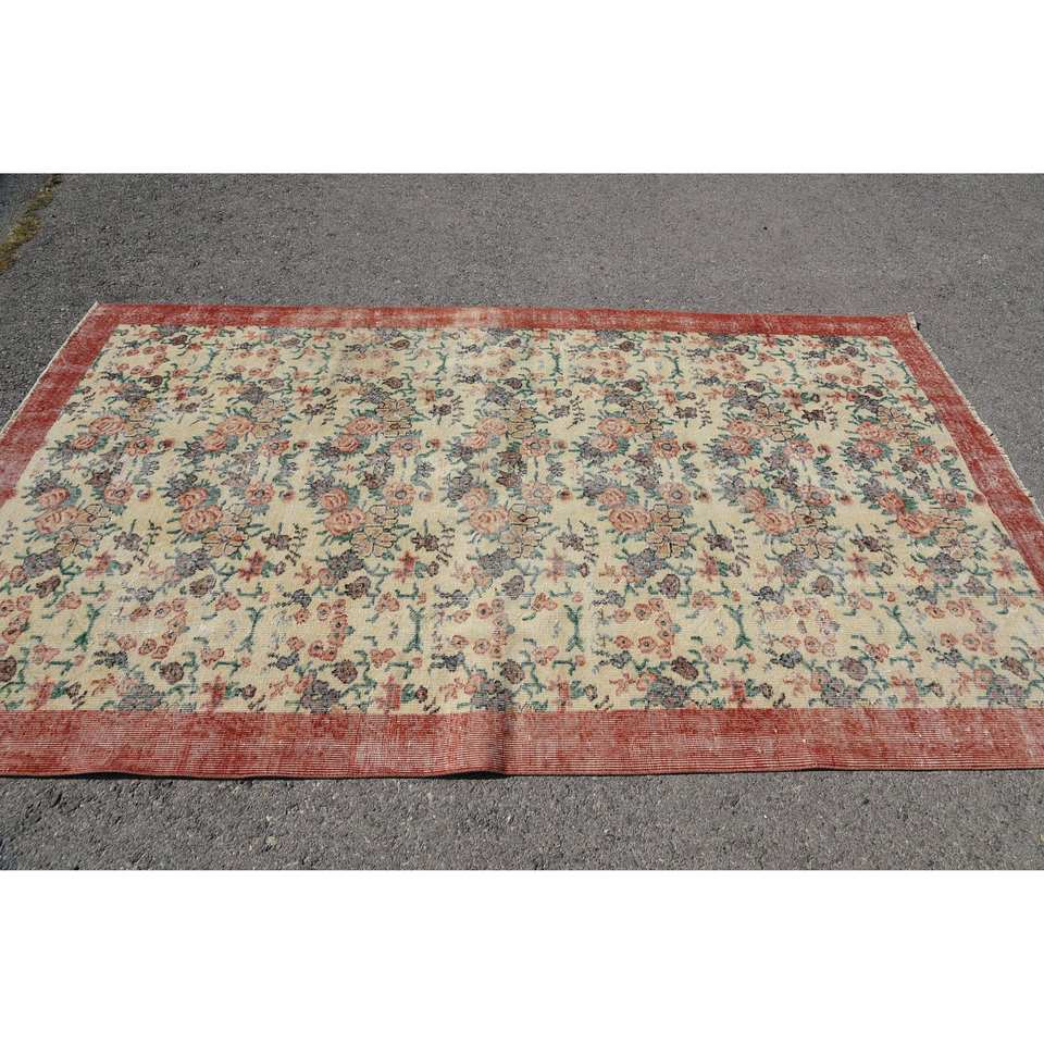 Vintage Turkish Rug Classic Beige Red 5.2 X 9 ft Large Area Wool Latex Backing Patchwork Tabriz Rectangle Hallway for Room Decor