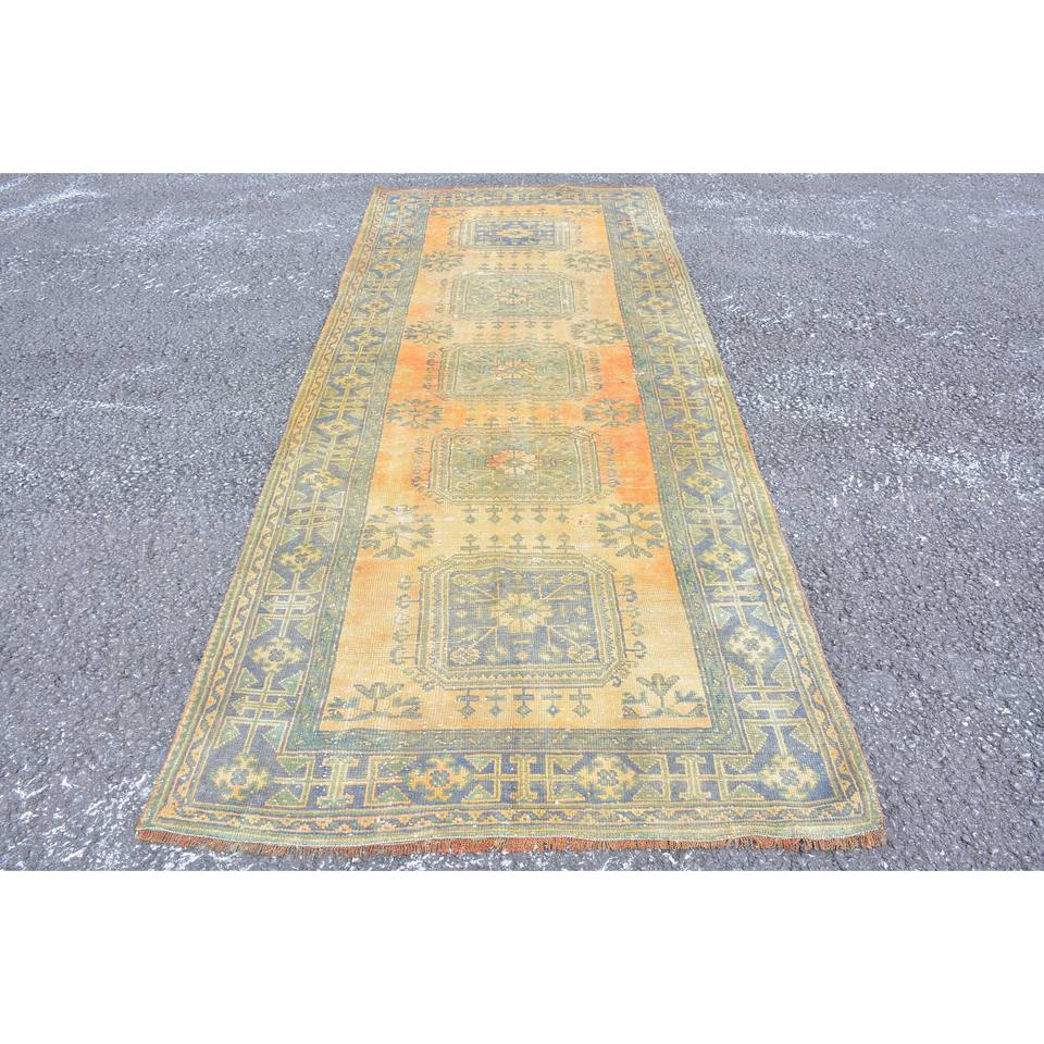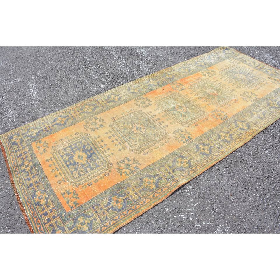 Vintage Turkish Rug Classic Orange Green Patchwork Design 4.3x9.8ft Wool Viscose Material Latex Backing for Living Room Bedroom