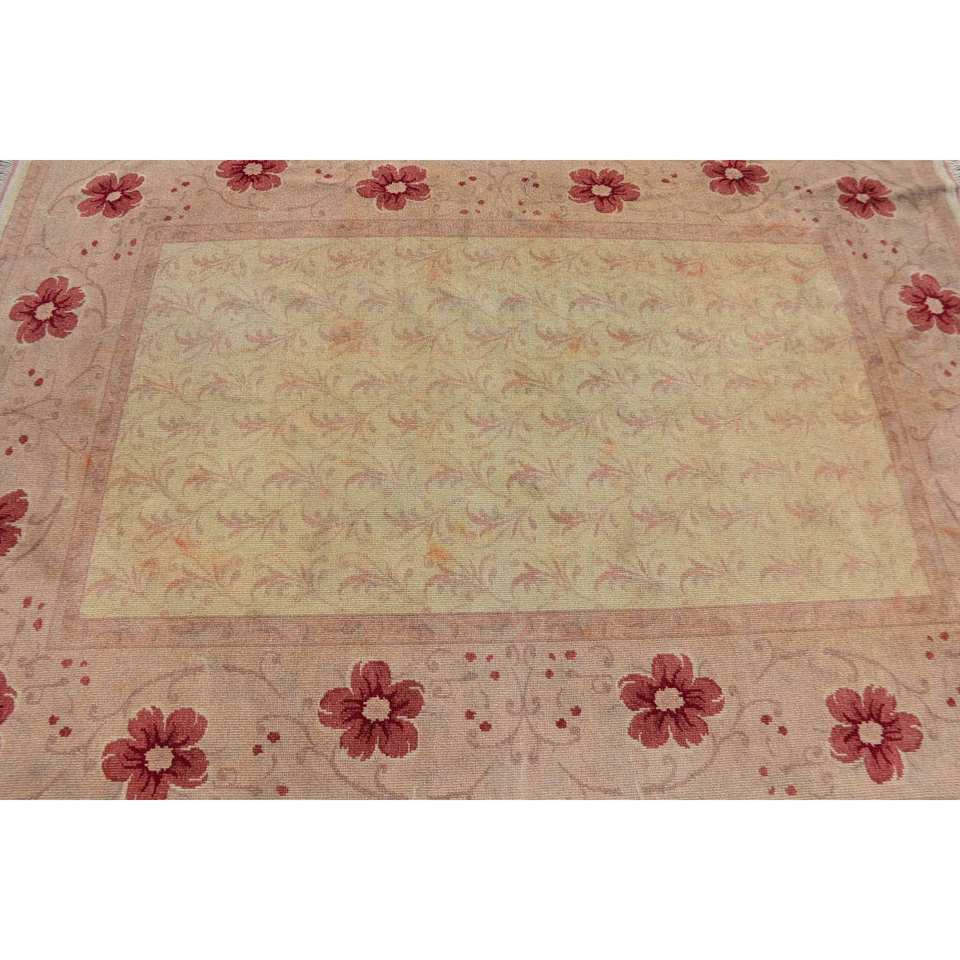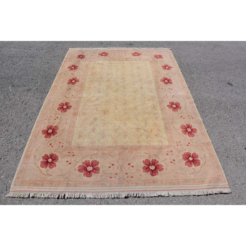 Vintage Turkish Rug Classic Pink Beige 5.3 X 7.5 ft Handmade Patchwork Design Wool Latex for Living Room Hallway for Teens