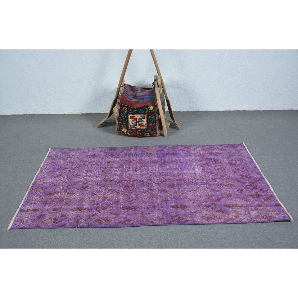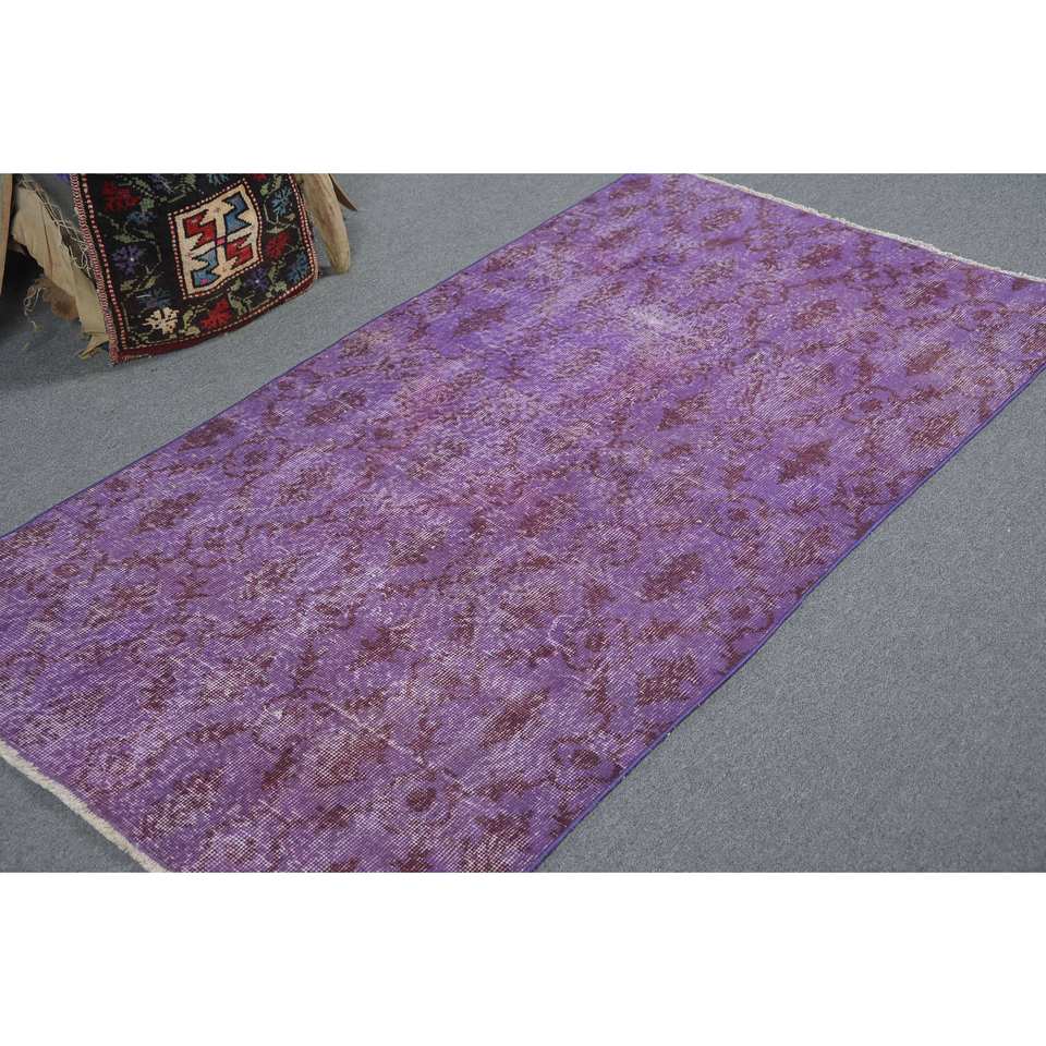Vintage Turkish Rug Classic Purple Brown 3.2x6ft Handmade Patchwork Wool Rectangle Latex Backing for Living Bedroom for Teens