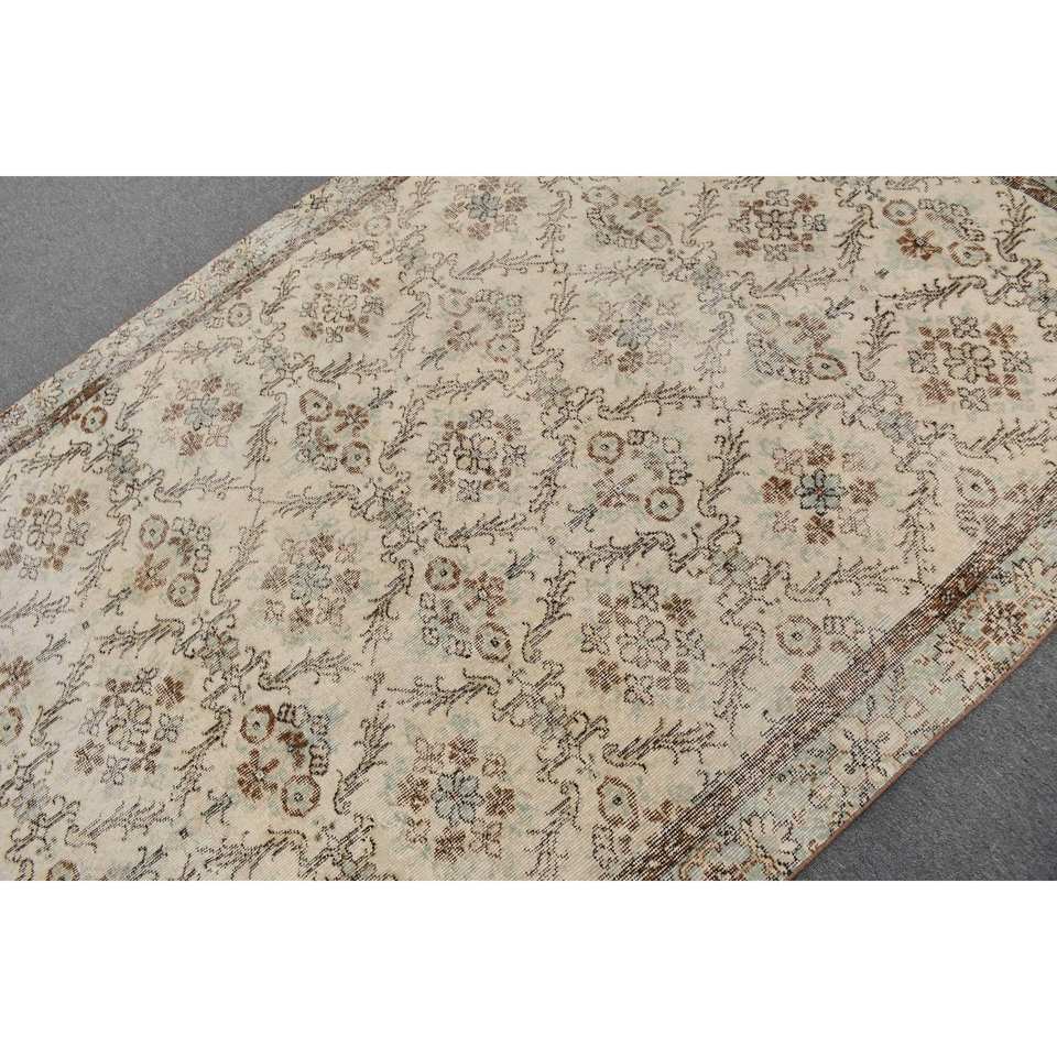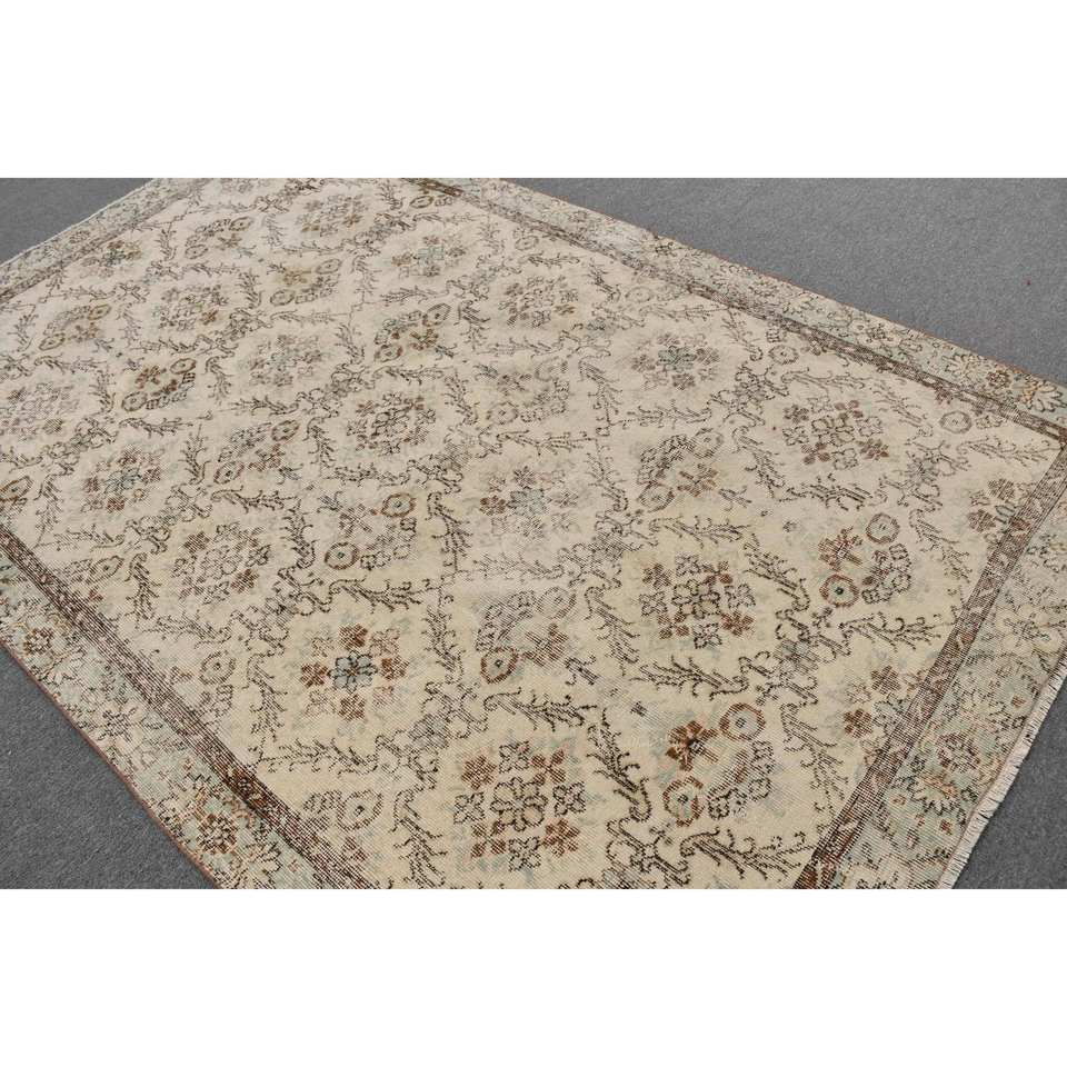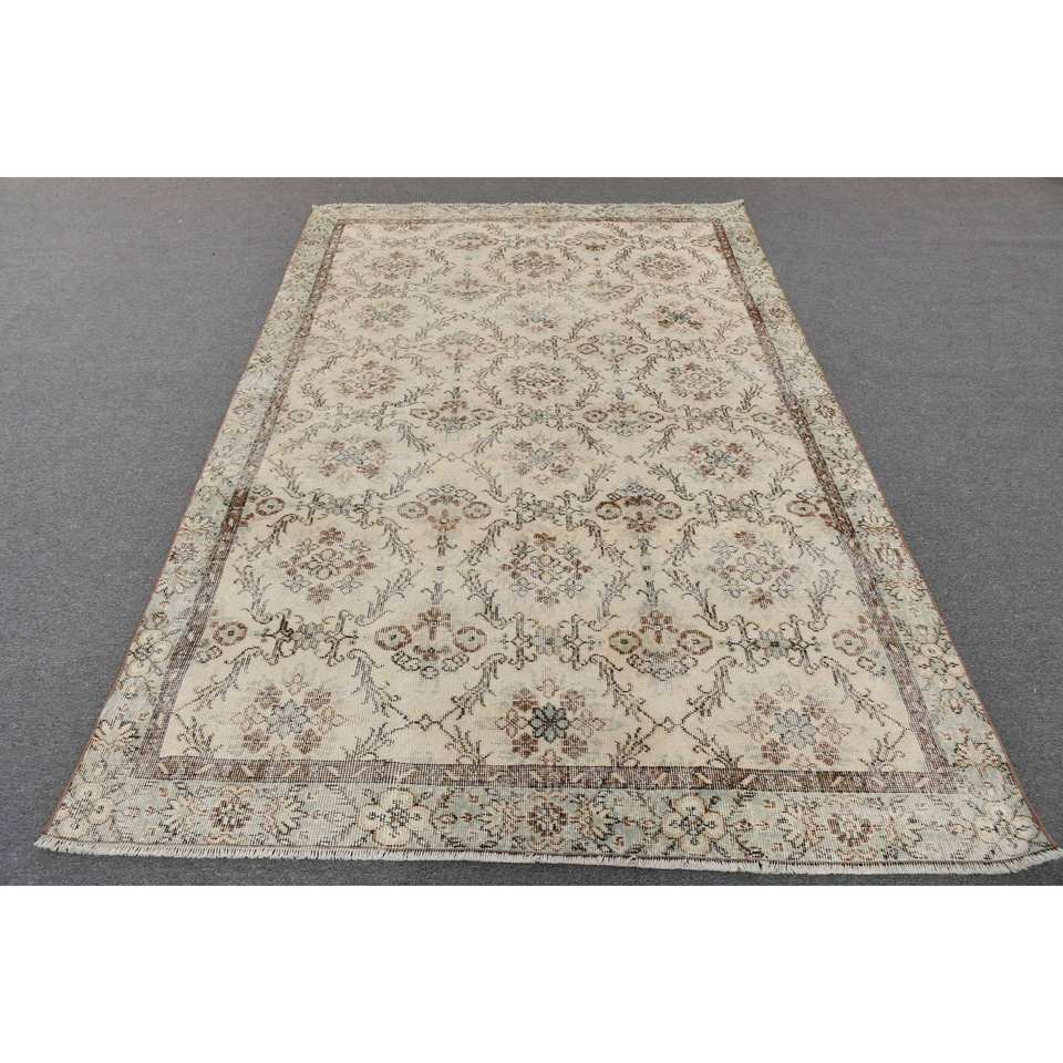 Vintage Turkish Rug Classic White Brown 5.6 X 8.8 ft Handmade Patchwork Design Wool Latex Tabriz for Living Hallway Rectangle