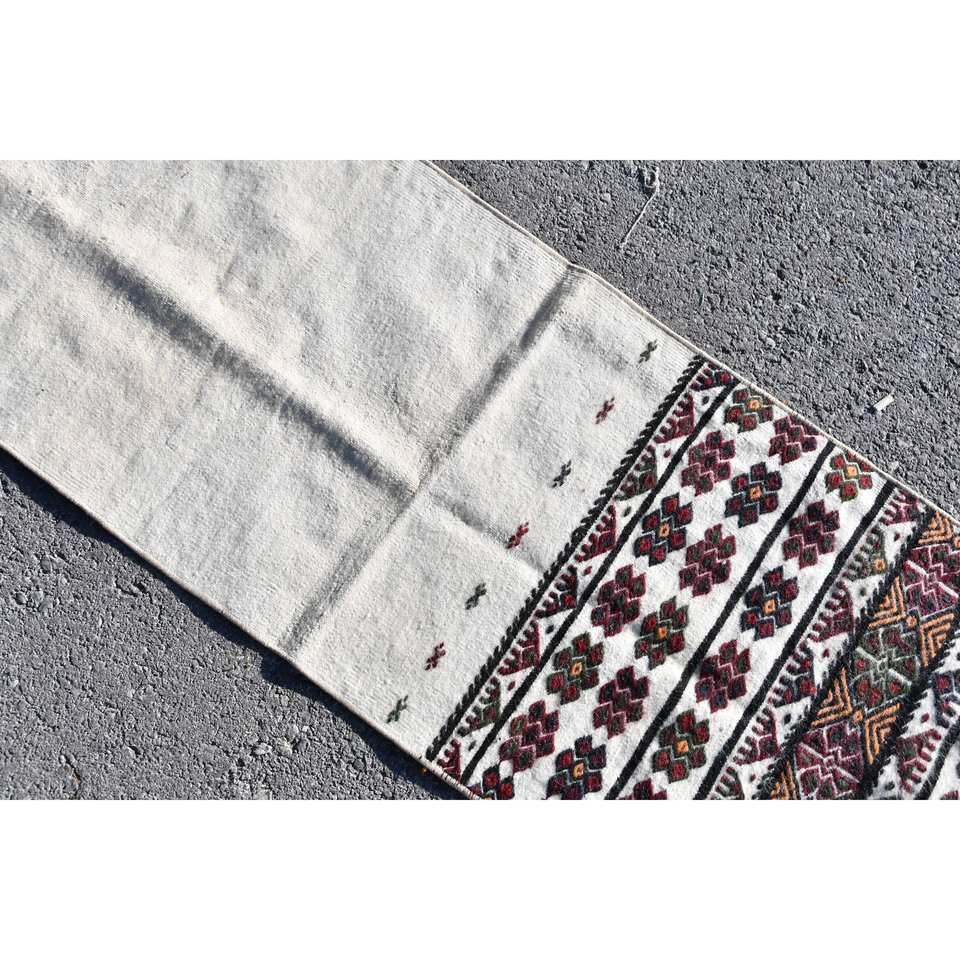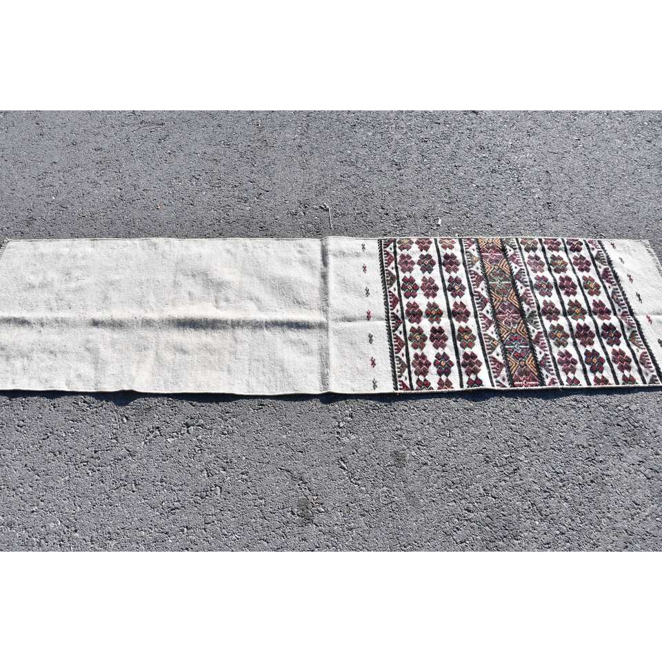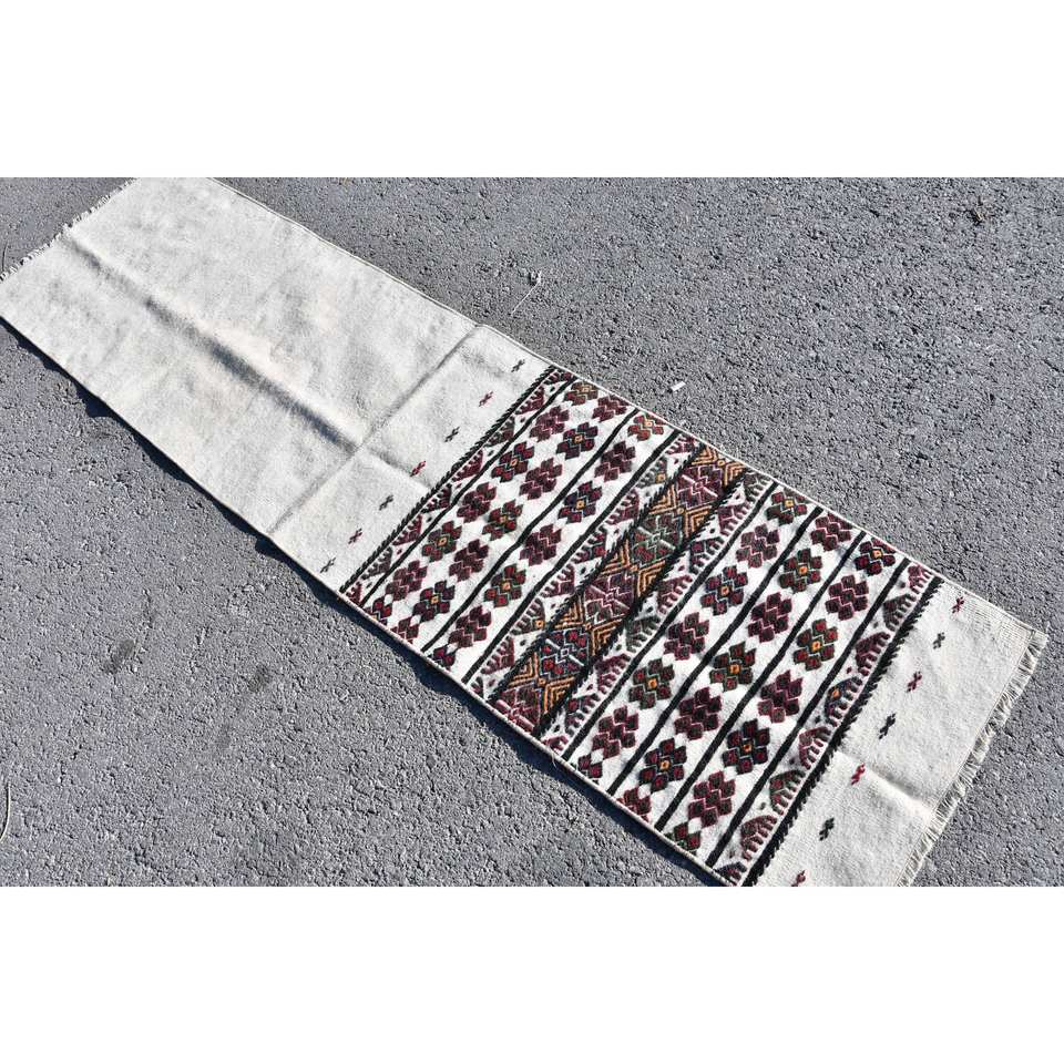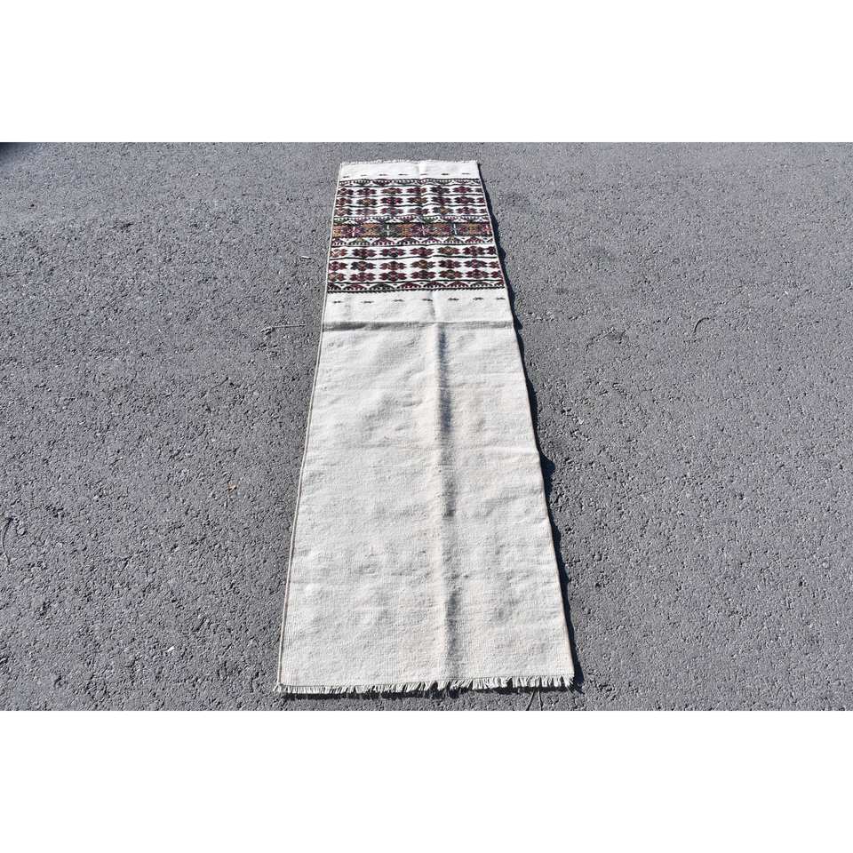 Vintage Turkish Rug Classic White Red 2 X 7.3ft Large Area Wool Latex Rectangular Plush Hight Abstract for Hallway Room Rug