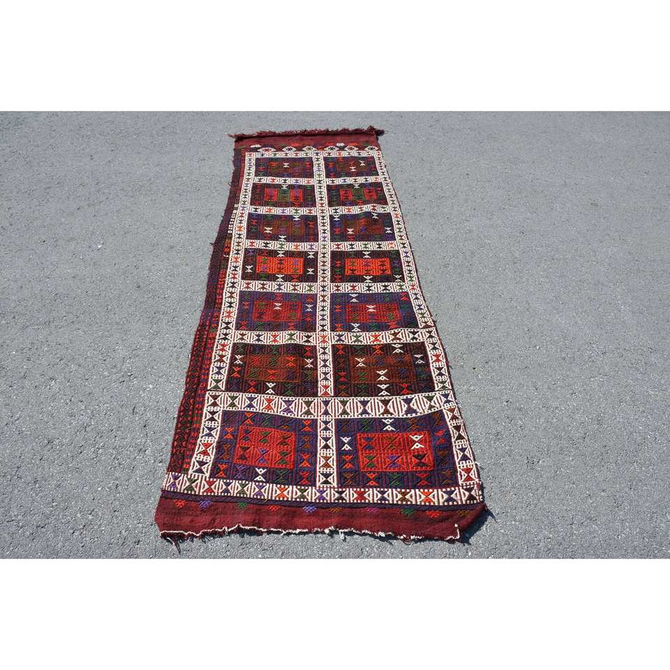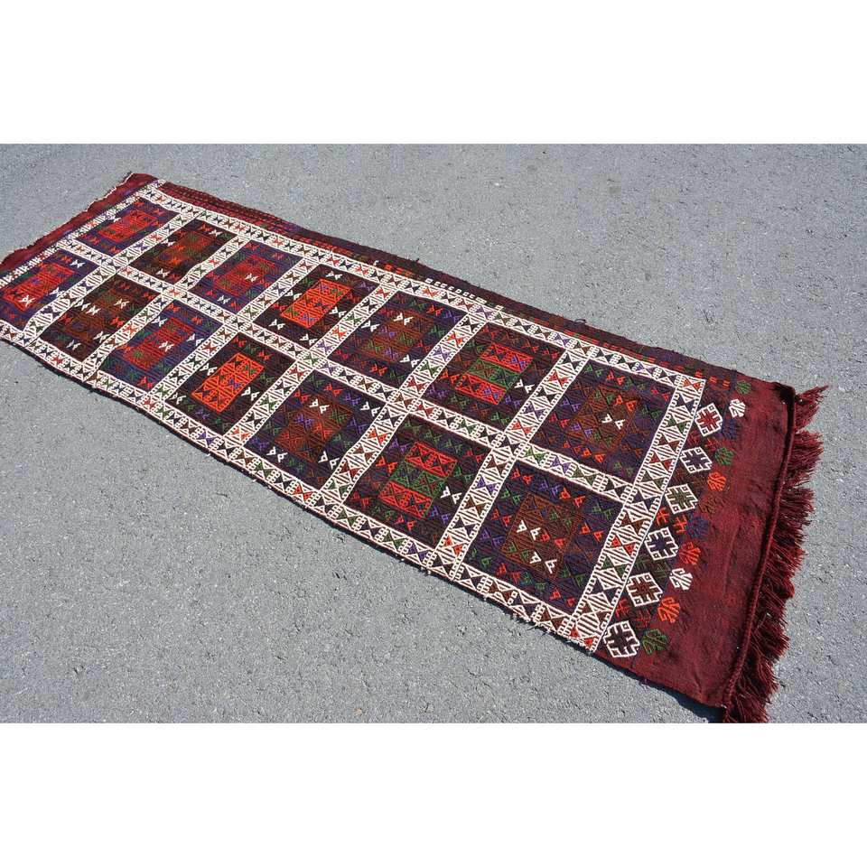 Vintage Turkish Rug Ethnic Red Brown 2.7x8ft Large Area Kilim Wool 10mm Thickness Patchwork Pattern Latex for Hallway Room Decor