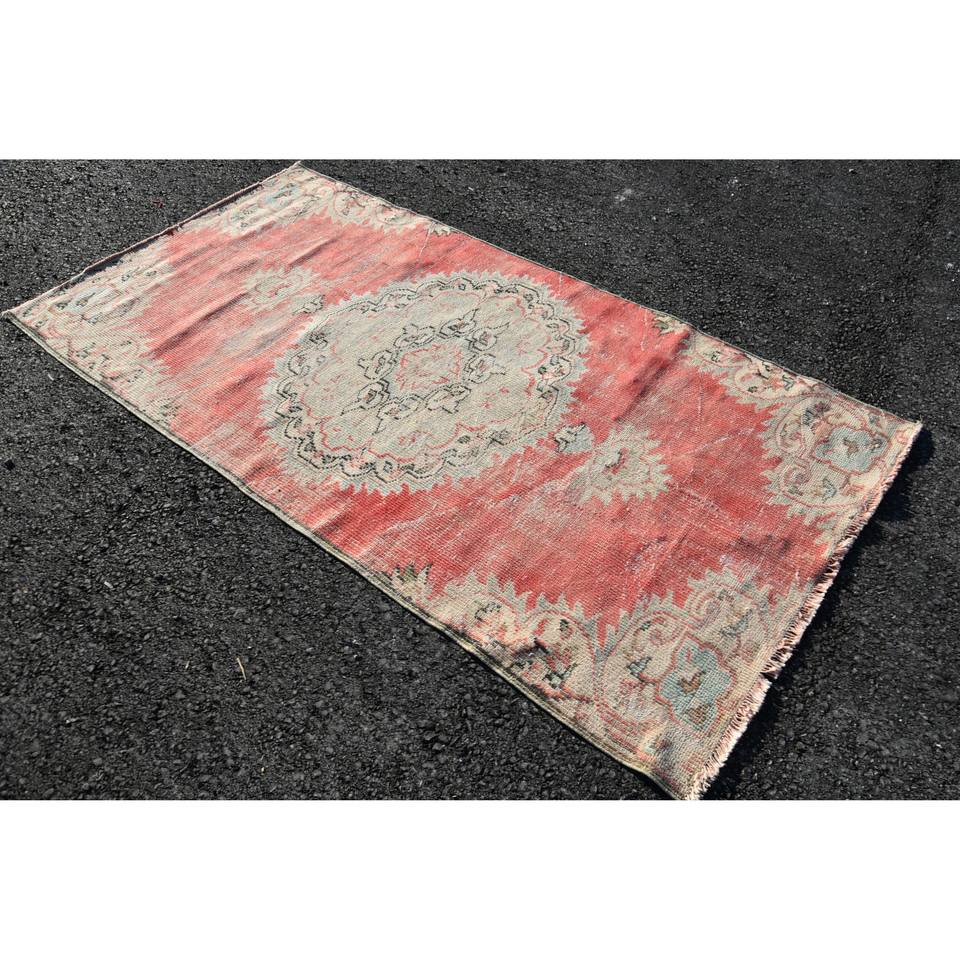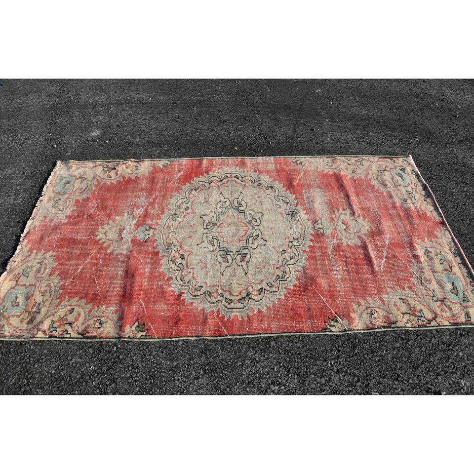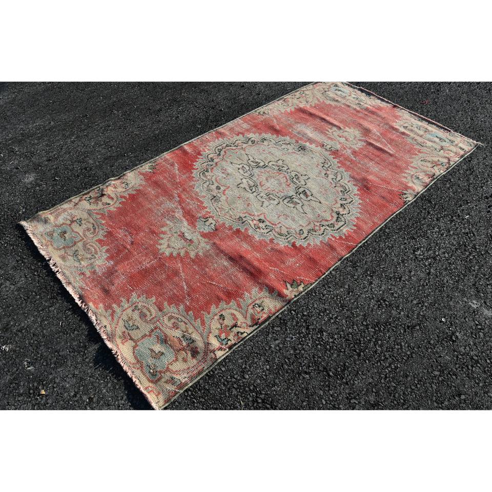 Vintage Turkish Rug Large Area 4.1 X 7.8ft Classic Red Beige Abstract Pattern Wool Material 10mm Latex for Hallway Room Decor