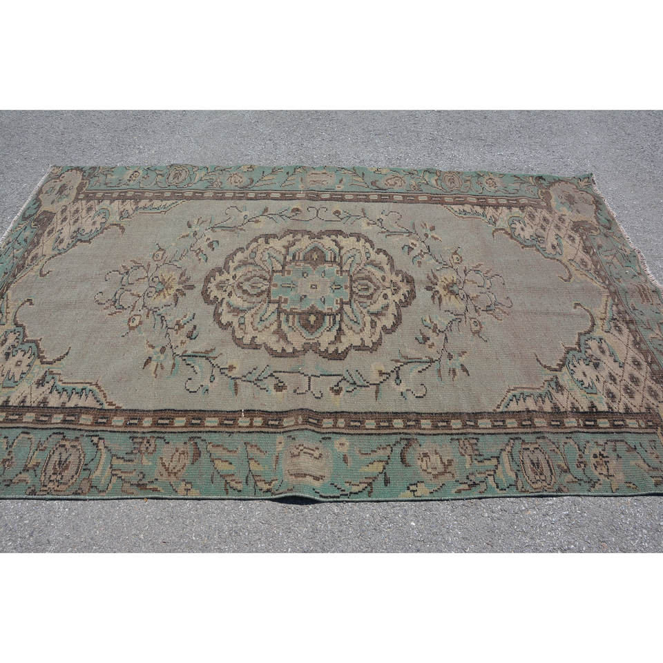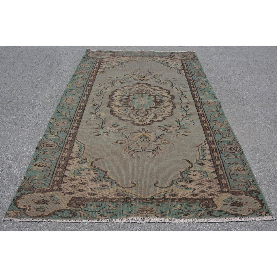 Vintage Turkish Rug Large Area 5.6 X 8.7 ft Green Brown Wool Latex Backing Patchwork for Teens Rectangular Hallway Room Rug