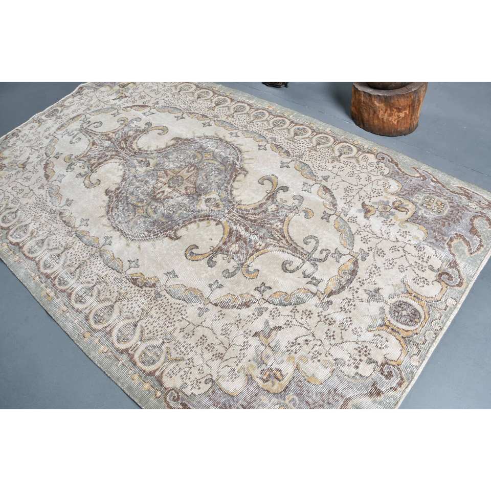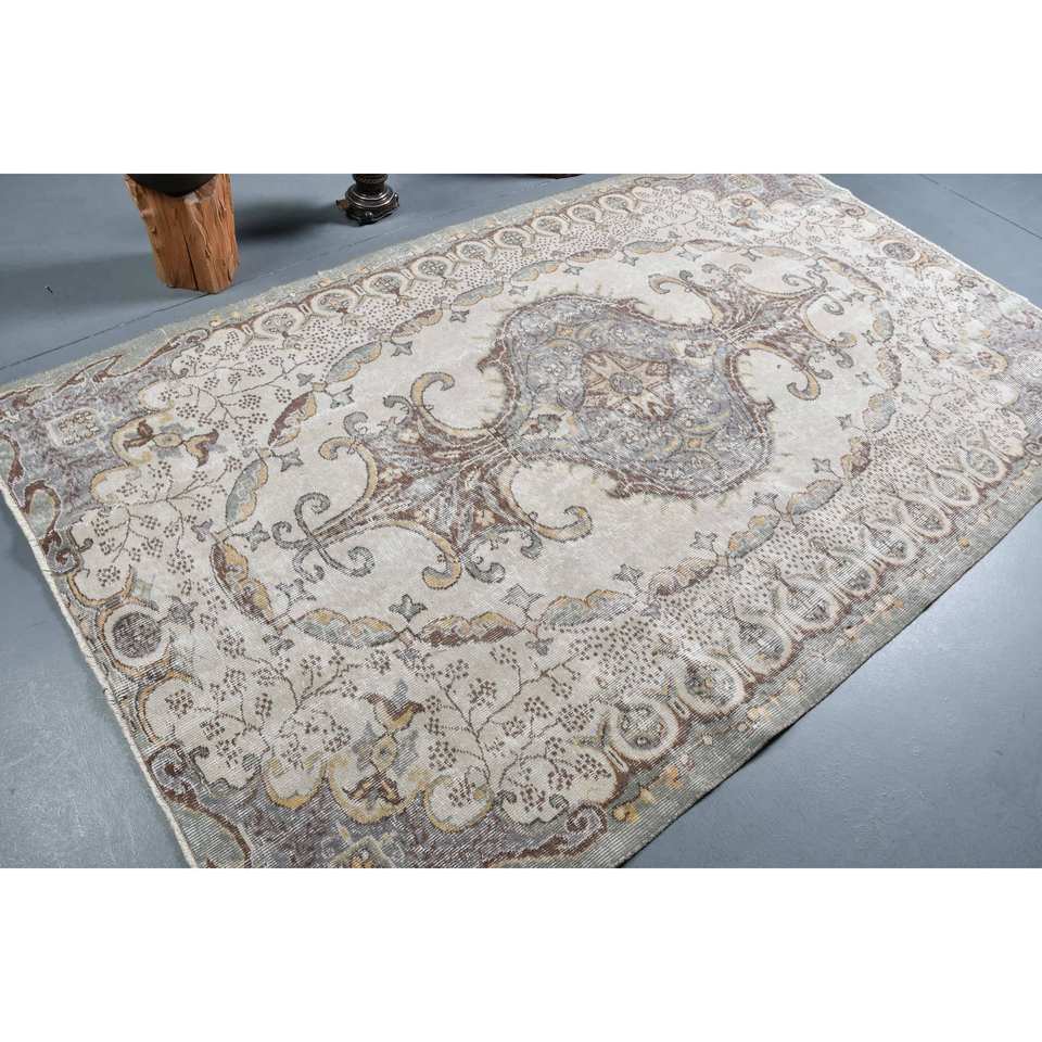 Vintage Turkish Rug Large Area 5.2 X 8.6 ft Beige Brown Patchwork Pattern Wool Material Latex Backing Style Tabriz for Teens