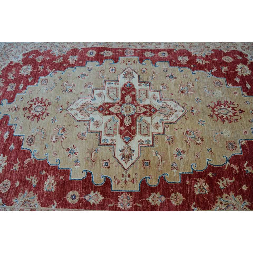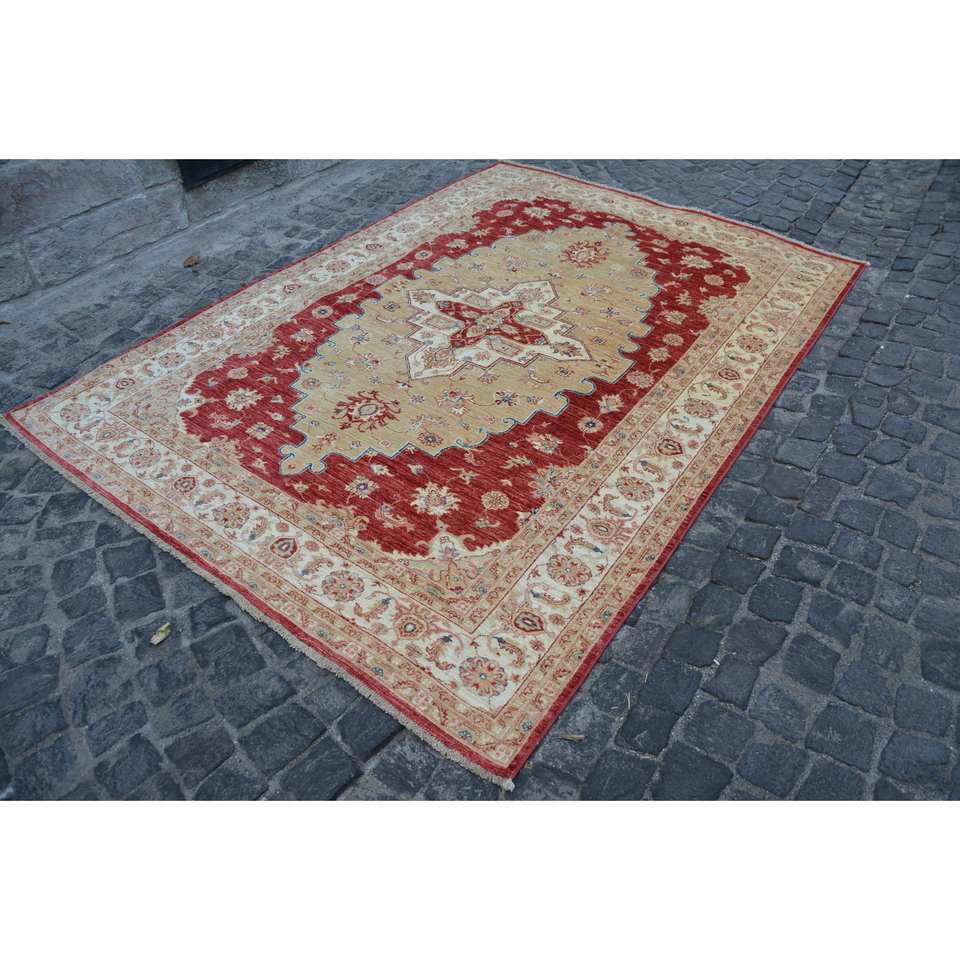 Vintage Turkish Wool Rug 6.7 X 9.4 ft Large Area Traditional Red Beige Patchwork Pattern 10mm Latex for Teen Hallway Room