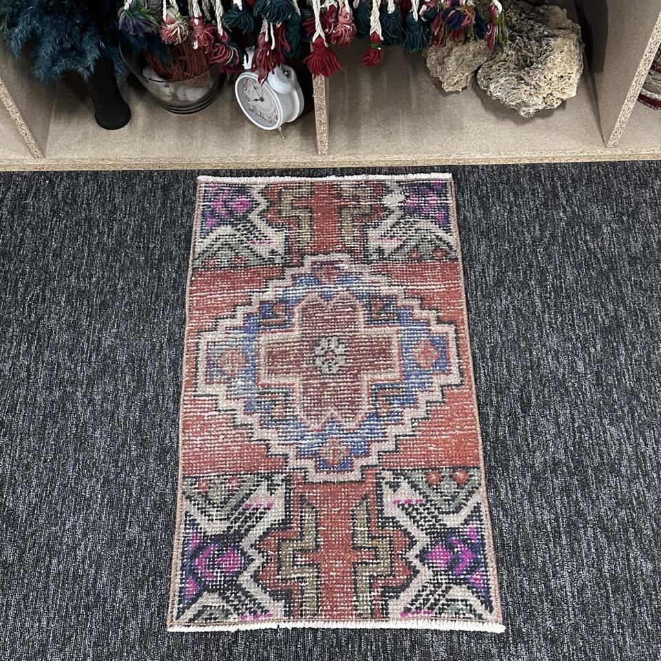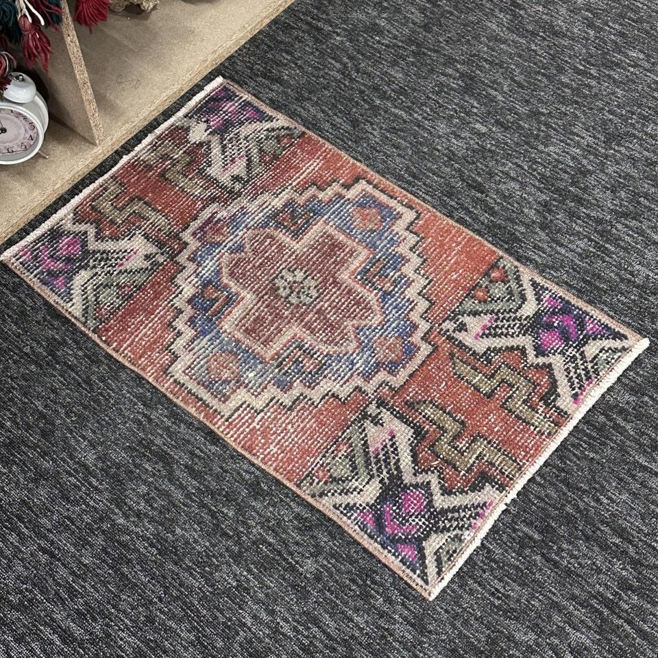 Vintage Turkish Rug Rug 1.5x2.4 ft, Brown Small Geometric Wool Rug